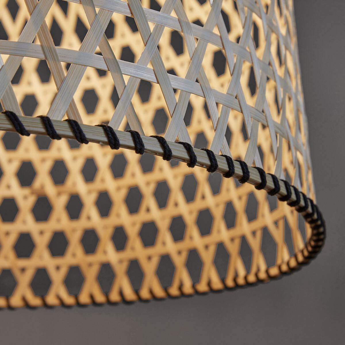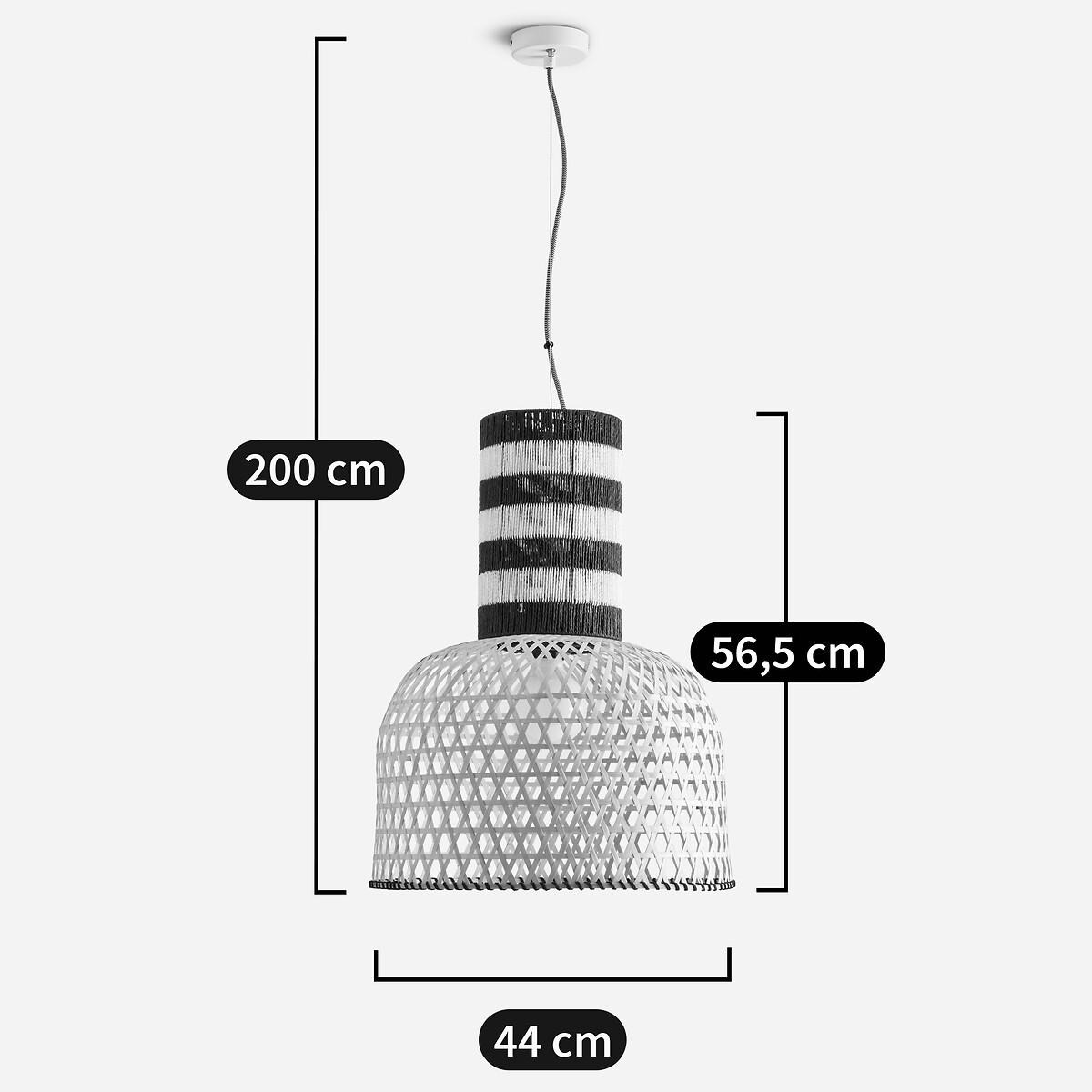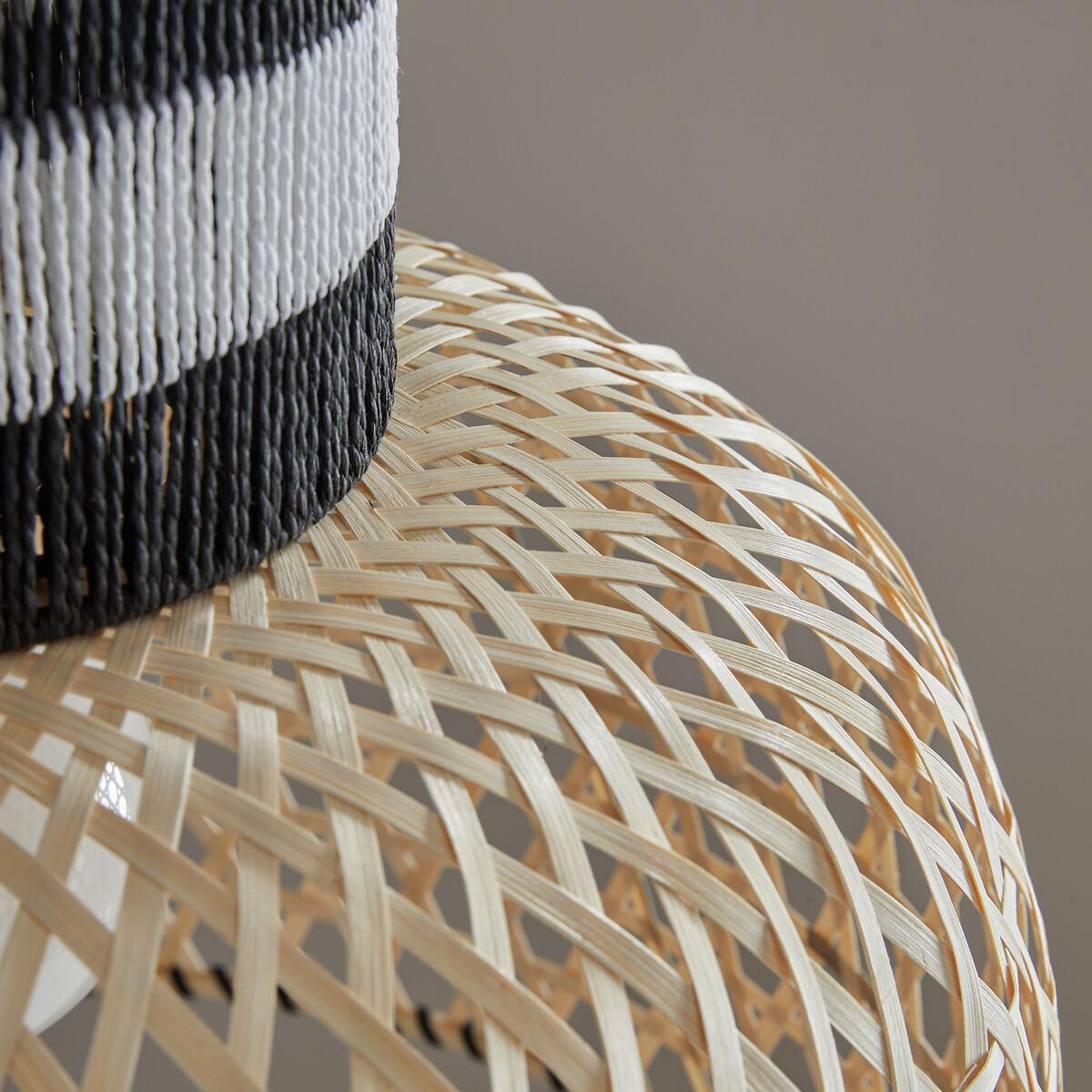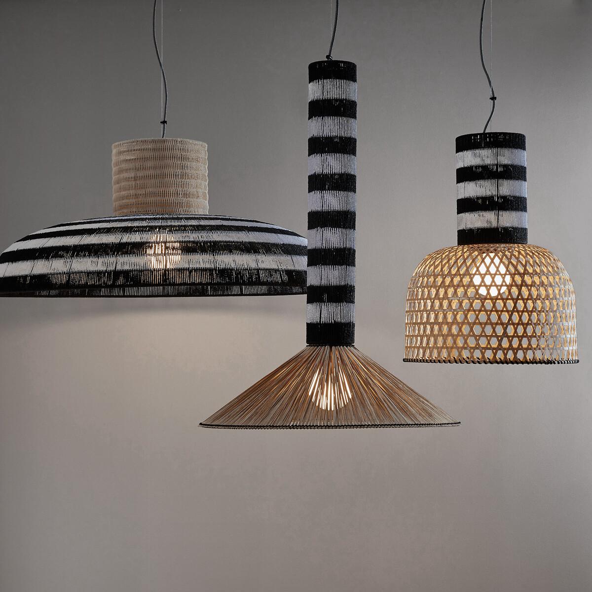 An original tribe of three lamps with bold, funky accents. Woven baskets in different sizes stack up to form unique creations, with lampshades in rattan, natural bamboo or black and white woven paper. The Tribe pendant lamp is part of the "Nomad Escape" collection designed by Otto, an agency founded by architect and designer Paola Navone. Led by Cristina Pettenuzzo and Domenico Diego, this collection has a bold and unique identity, transforming the home into an bright and positive oasis of well-being for all seasons. Product Details • Lampshade made from hand-woven natural bamboo stems • Tubular lamp head in hand-woven black and white paper • Black and white textile-sheathed power cable • Supports E27 bulb (not supplied) • For bulb (not included): LED 10W max. Dimensions • Overall diameter : 44cm • Total Height: 56.5cm • Diameter of the tubular lamp head: 17.5cm • Height of the tubular lamp head: 27.5cm • Cable length: 200cm • Weight: 1.1kg. Dimensions and weight of parcel • 1 parcel • L35 x H48 x D48cm. 2.7kg