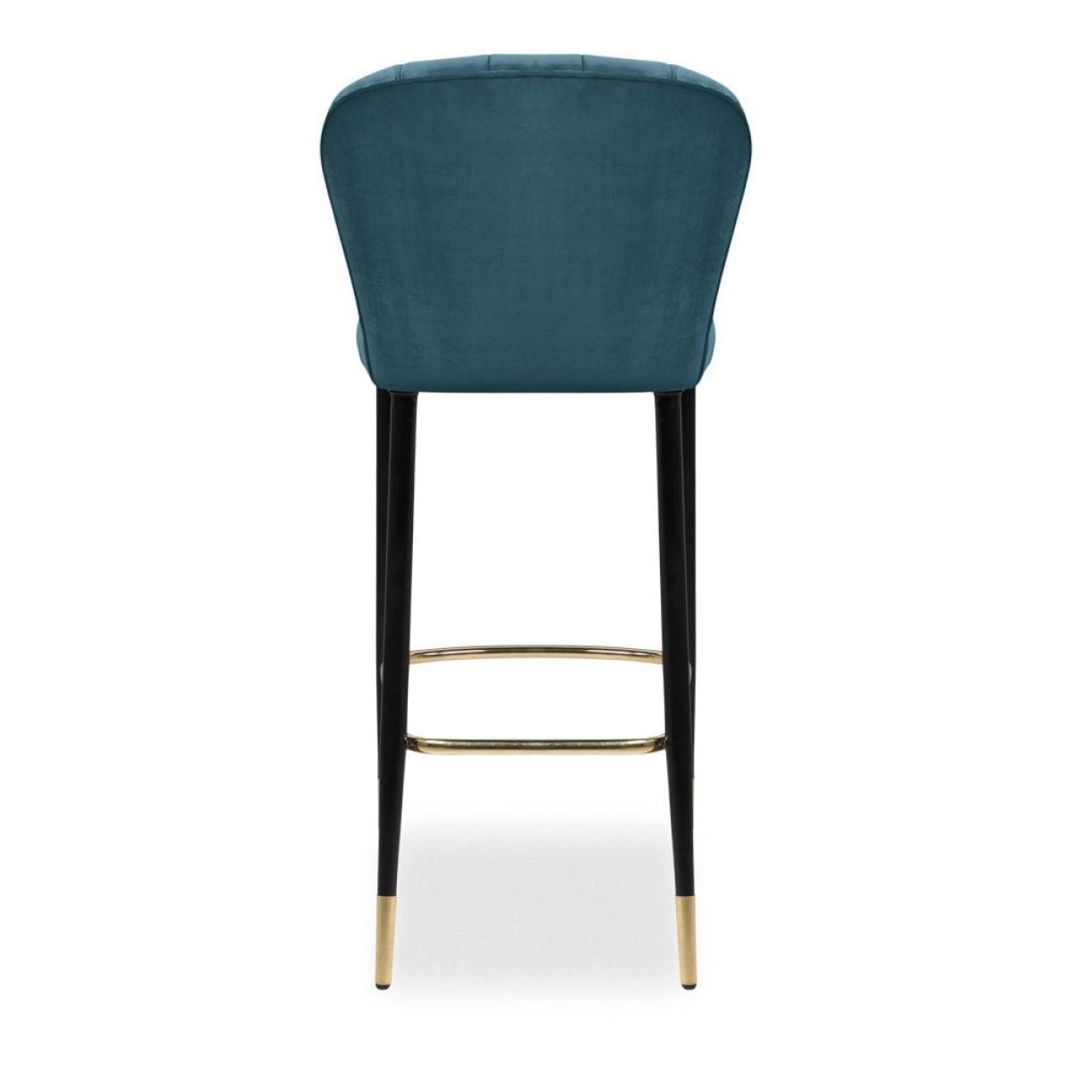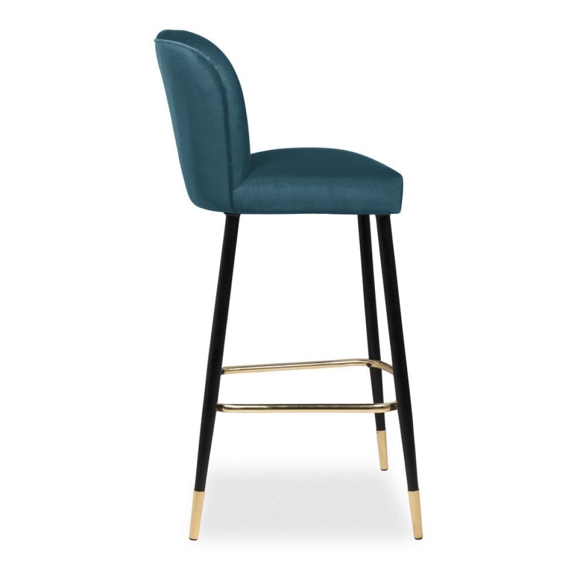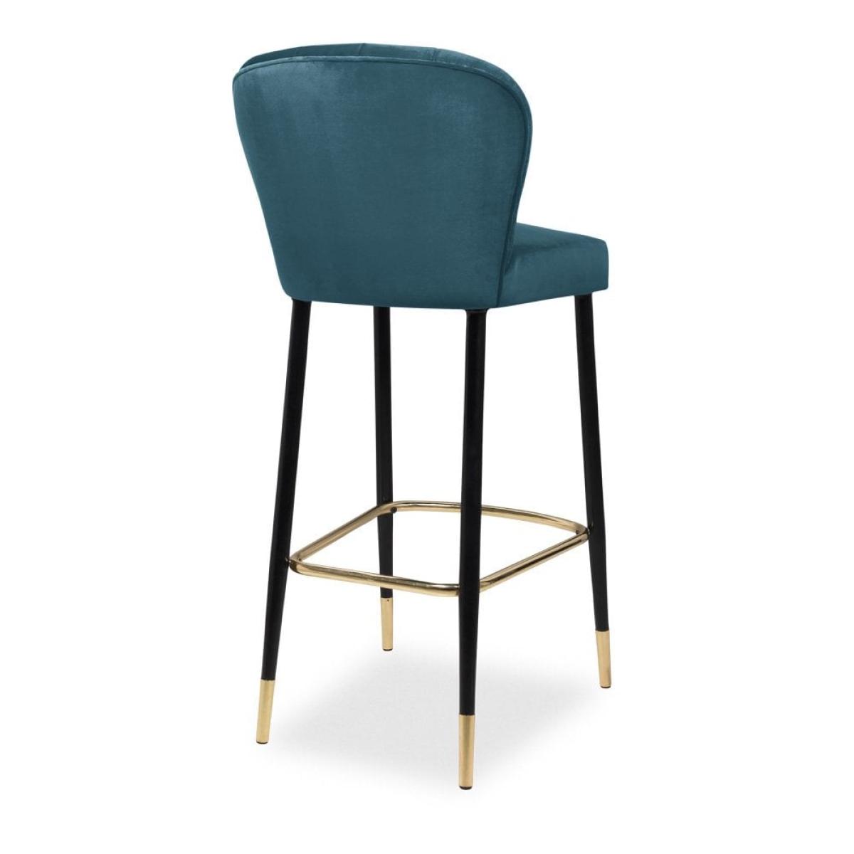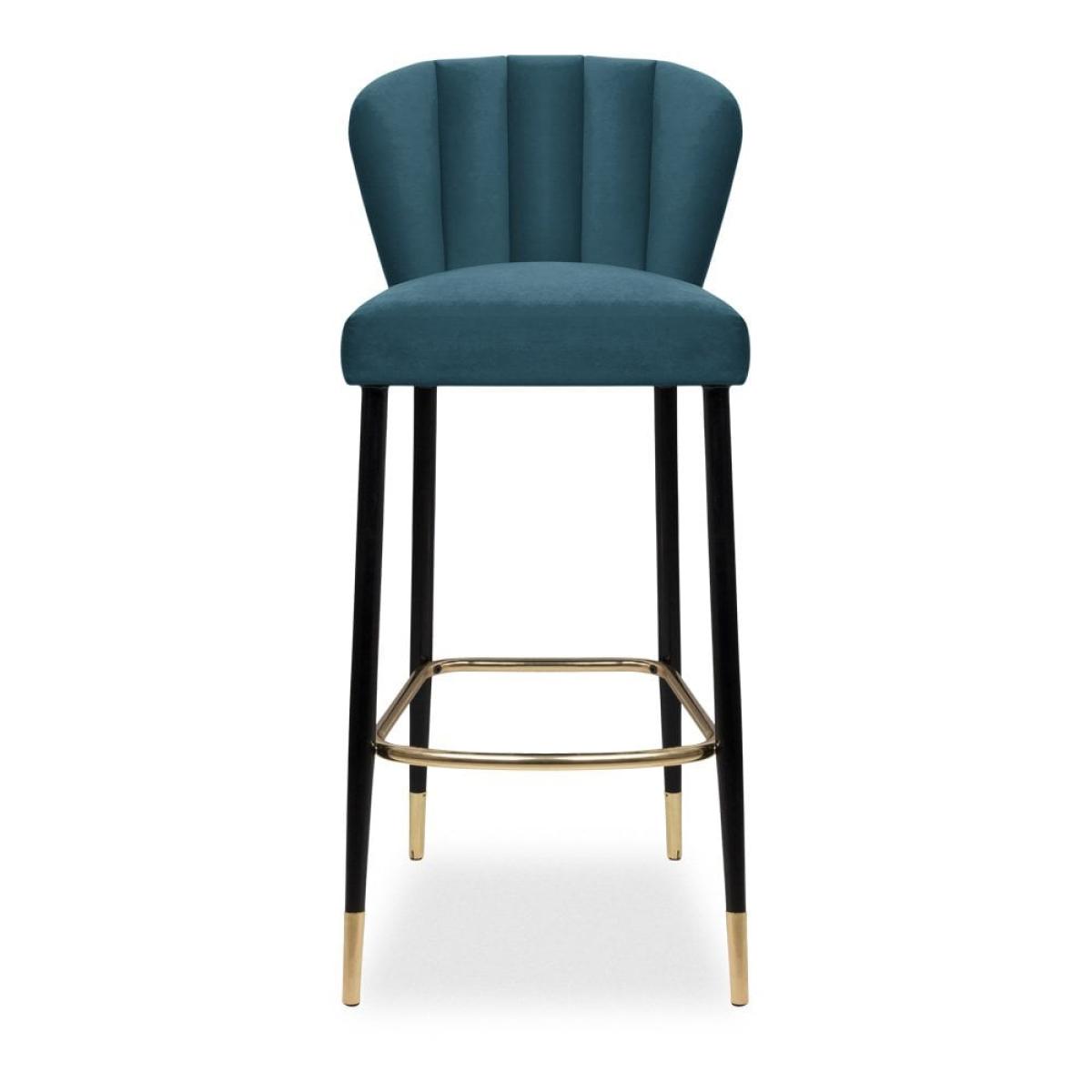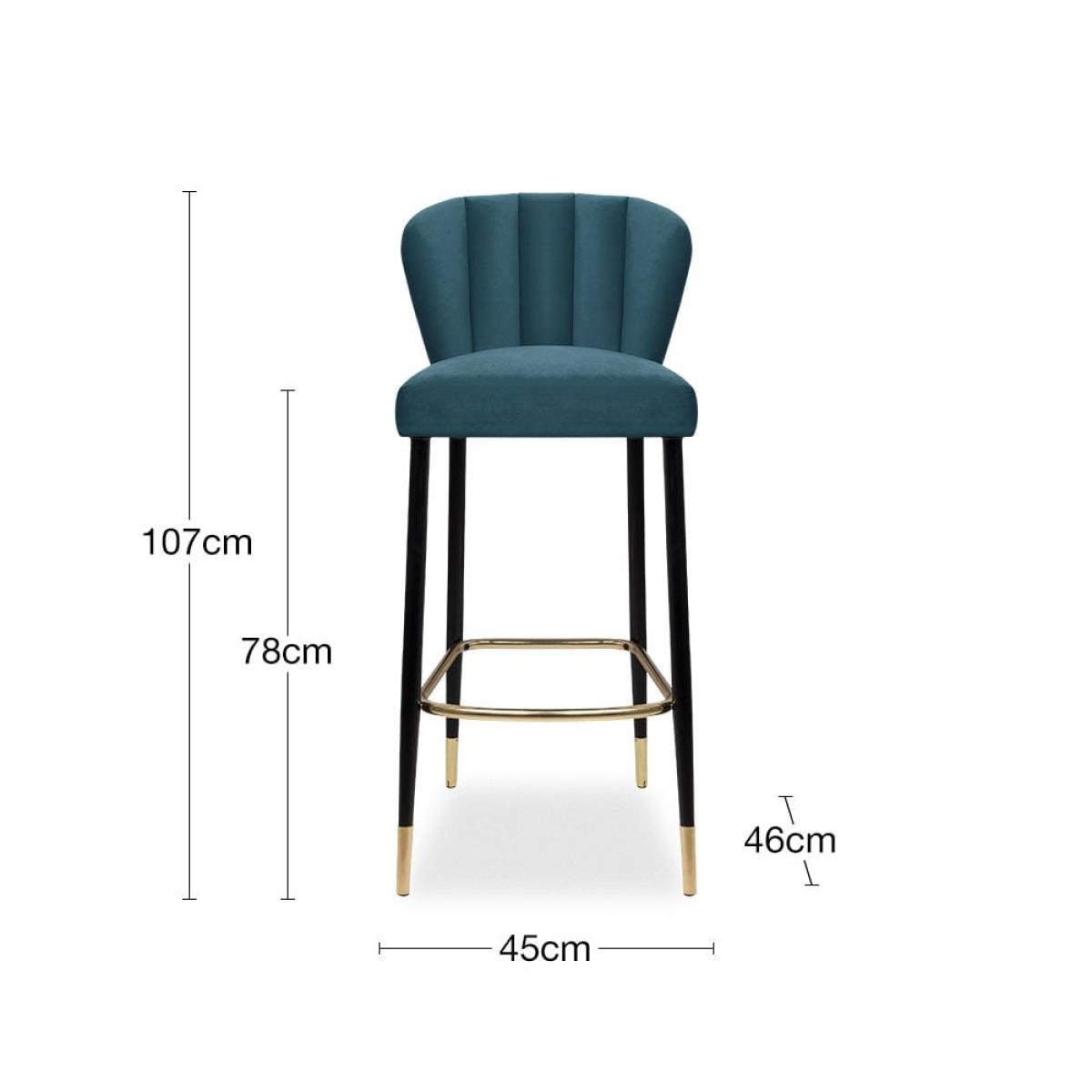 I love this bar stool for its sophisticated colour and plush velvet texture, which instantly elevates any space. Its midnight blue hue is versatile enough to work well in both contemporary and luxe interiors, especially when paired with metallic accents or muted colour palettes. The scalloped back adds a touch of timeless elegance, making it perfect for home bars, breakfast counters, or even stylish seating in a seating nook. Practical styling tips include mixing with lighter shades to create contrast or complementing it with dark wood or marble surfaces for a cohesive look. The slender black legs with gold tips lend a refined, modern edge, and the footrest not only adds to comfort but also anchors the piece visually. Overall, a great choice for adding a pop of colour and a layer of glamour to your space.