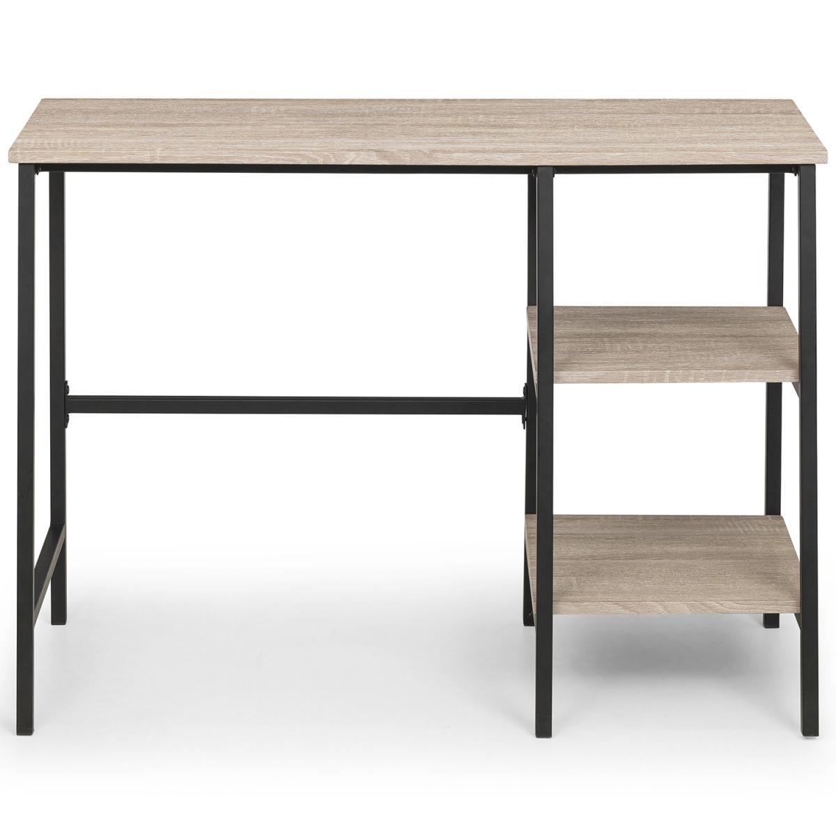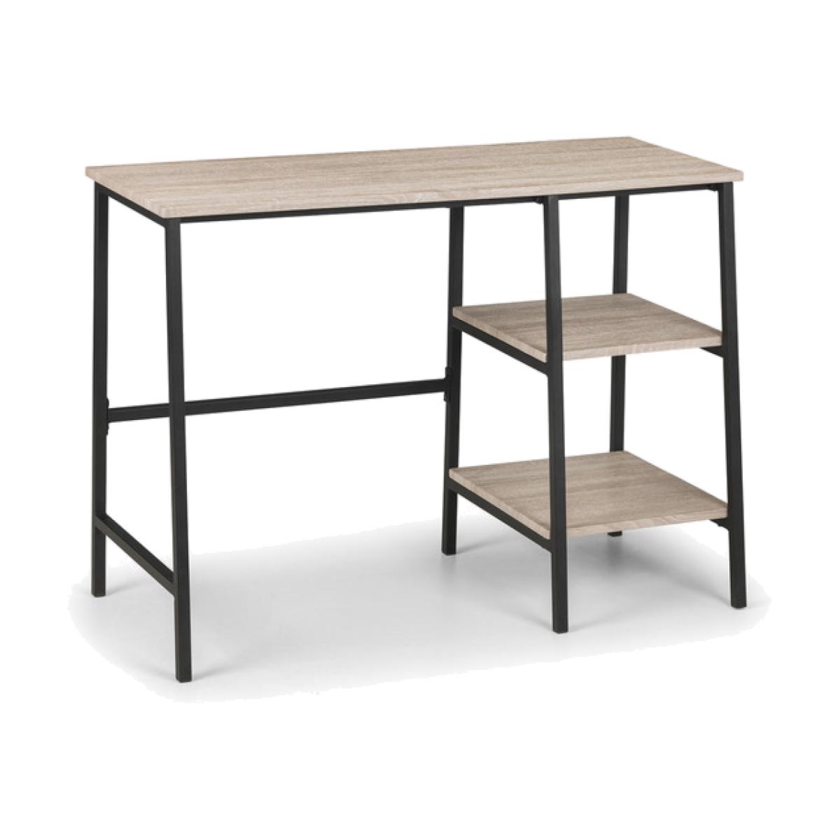 With clean, simple lines accented by a sharp black metal frame, the Tribeca Desk is a very modern desk that will add a contemporary touch to any living or work space. The large tabletop offers plenty of space to work and organise across, while the design of warm sonoma oak will keep the room looking sophisticated. The two shelves down the right side are ideal for storage, so your stationary, notebooks, and references are always in arm's reach.