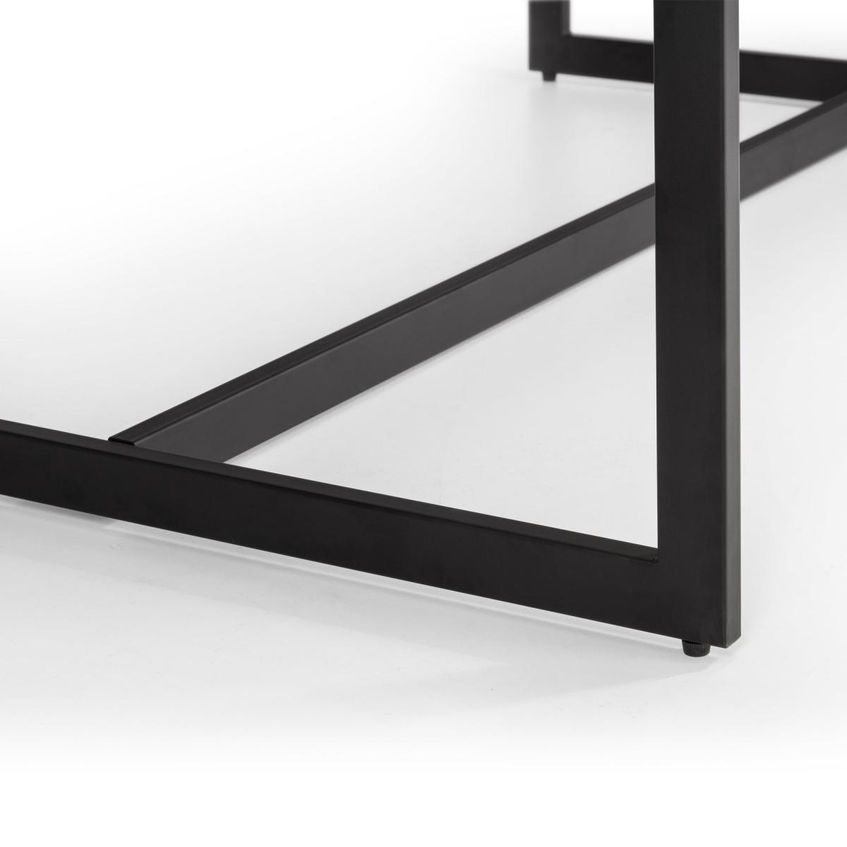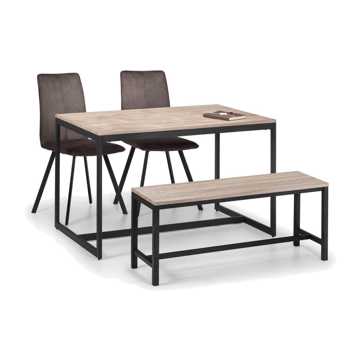 Black coated metal frame and sonoma oak foil gives a premium feel. The Modern design makes this piece suitable for a range of decor. The Frame design gives both a simplistic and modern look, sure to impress guests. Accompanied with bench and 2 Chairs of the same design this complete set will help finalise your overall look in any room.