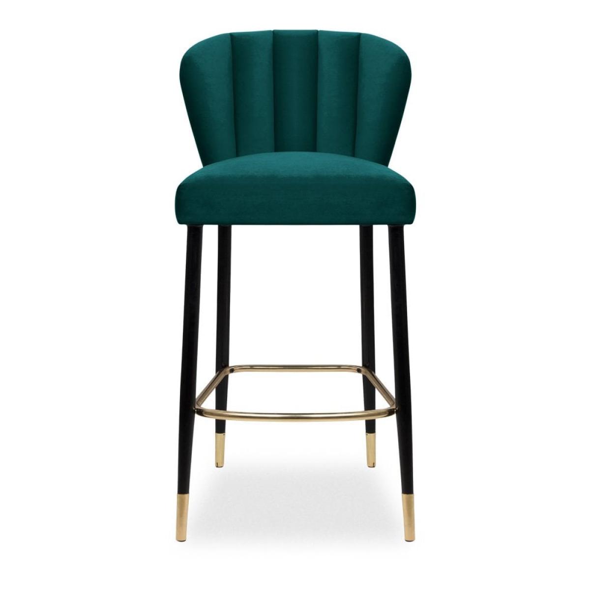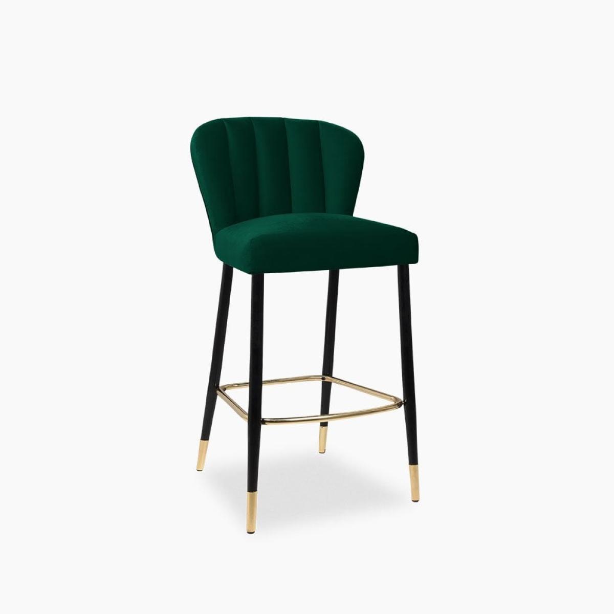 The Tribeca Art Deco kitchen stool is upholstered in teal velvet and makes a welcome addition in any home bar or kitchen island. The padded seat and backrest has vertical stitched details and a gold footrest, perfectly placed to bring comfort to you and your dining space. Choose from a variety of colours to match your interior. Then style alongside other velvet furniture items and accessories, finishing with a hanging pendant light from our range of opulent lighting. View The Tribeca Range