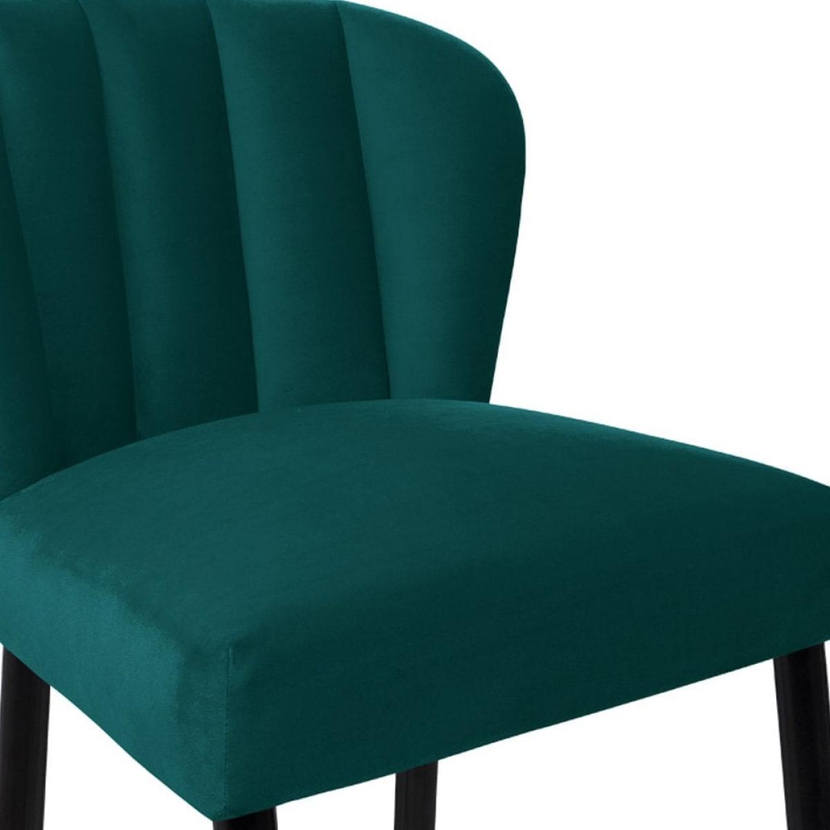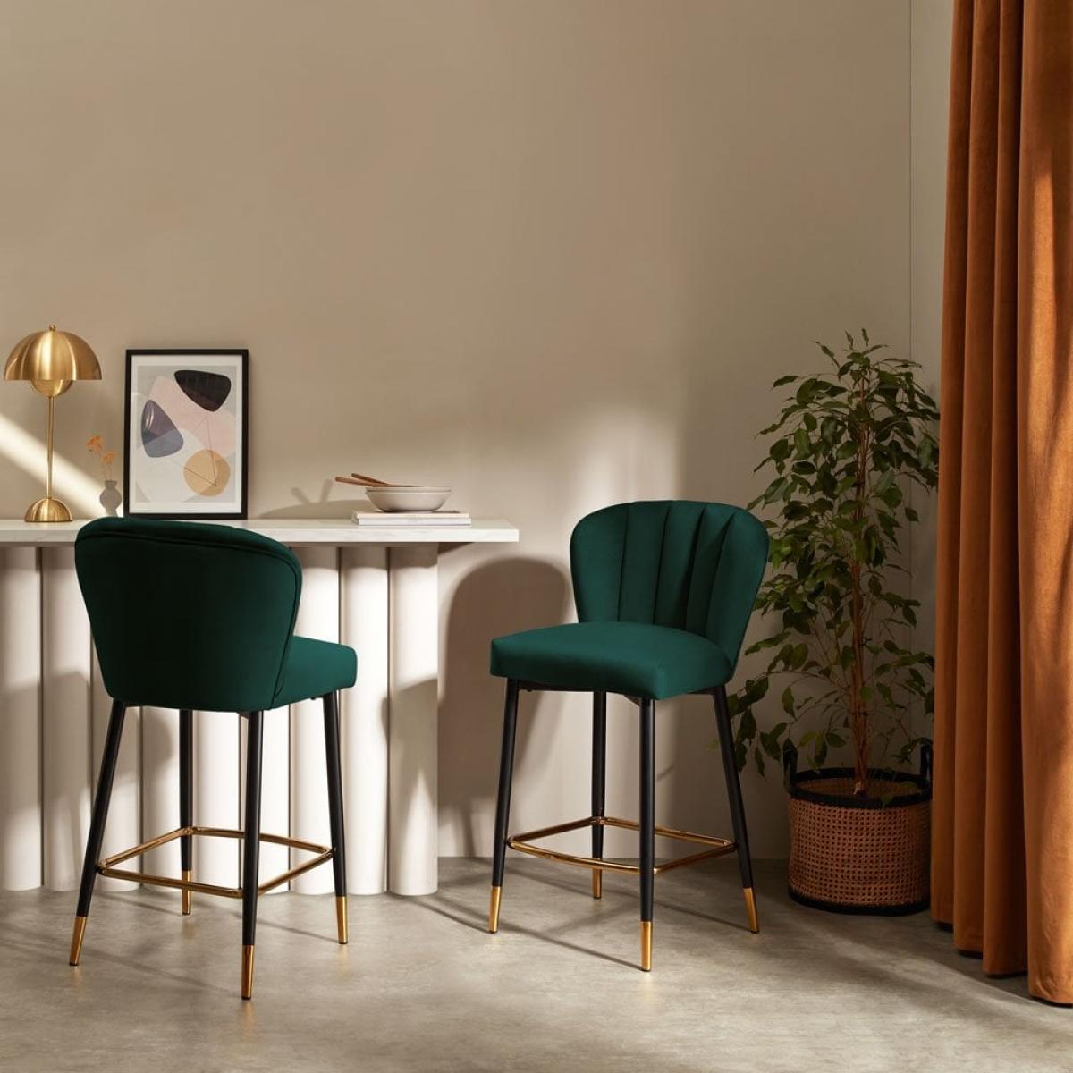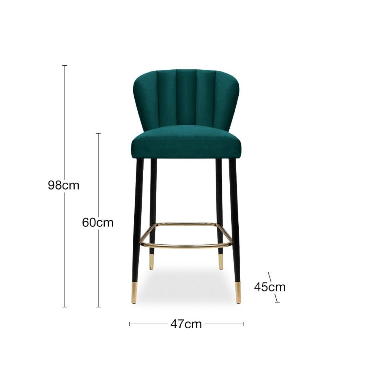 I love this barstool for its rich teal velvet finish, which adds a pop of colour and a touch of luxe to a variety of interiors. It's versatile enough to work well in both contemporary and mid-century styled kitchens, home bars, or even trendy café settings. When styling, consider pairing it with neutral tones or natural materials like wood or stone to let the teal flourish, or mix with other jewel tones for a bold, eclectic look. Practical tips include limiting the number of contrasting colours for a cohesive appearance and ensuring the stool’s slender legs are complemented with matching metallic accents elsewhere in the space, such as lighting or hardware. This stool not only elevates the space aesthetically but also offers comfortable seating with its plush velvet and supportive backrest.