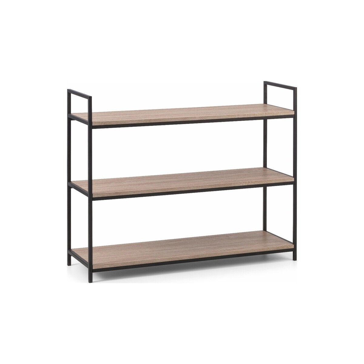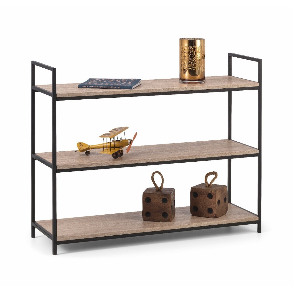 The Tribeca Low Bookcase is a striking and modern addition to any home, providing convenient storage space and minimalist style. The bookcase can obviously be used to store your favourite reading materials, but it also doubles up as a stylish display unit. Its slim black frame and warm oak-effect shelves create a warm and attractive contrast. Functional three-shelf storage. Strong powder-coated black steel frame. Warm oak effect shelving. Matches perfectly with the Tribeca Collection by Julian Bowen.