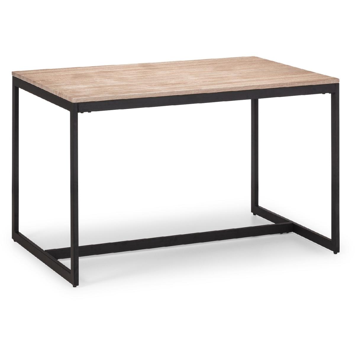 A cool, modern dining table designed to add a contemporary touch to any dining space. Its simple clean lines, delineated by a subtle, black coated metal frame are complemented perfectly by a warm, sonoma oak foil, to create a very stylish and sleek product. The perfect match for the Tribeca Bench, creating a modern atmosphere within your home.