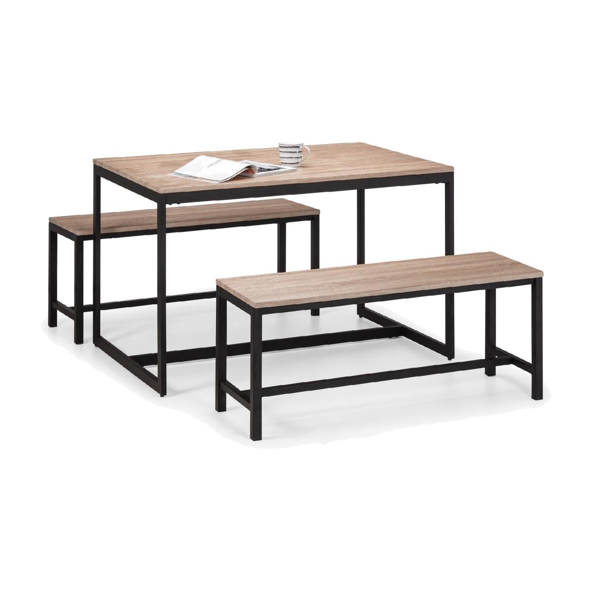 Tribeca Oak Table and Benches Set - Brown