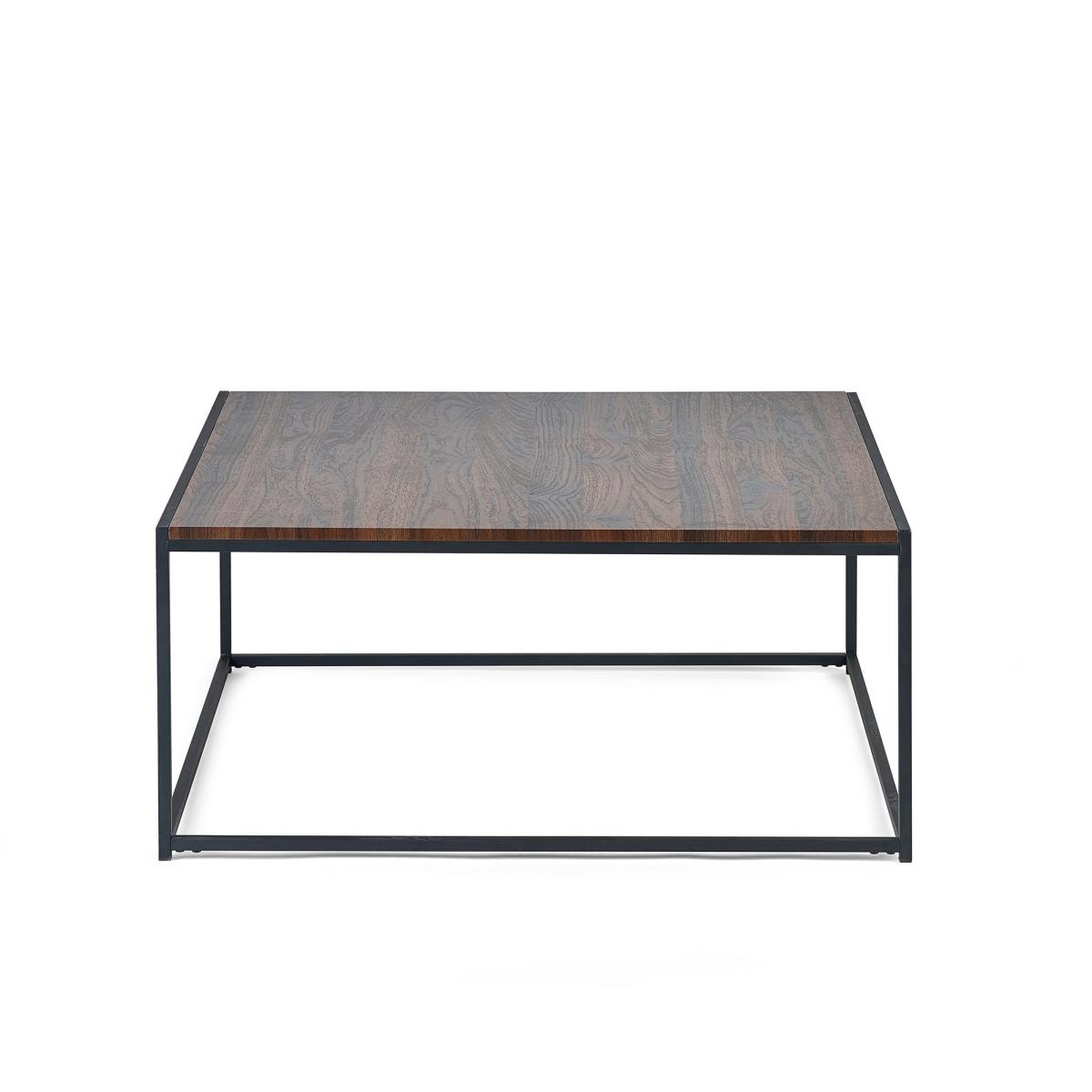 I love this coffee table for its sleek combination of warm walnut tones and minimalist metal framing, making it a versatile piece for various interiors. It works particularly well in contemporary or industrial-style spaces, where its clean lines and natural wood add a touch of warmth without overpowering the room. For styling, consider layering with a stack of books, a small green plant, or a decorative tray for practicality and visual interest. Its substantial top also makes it suitable for both casual and more polished settings, allowing it to anchor a seating area beautifully.