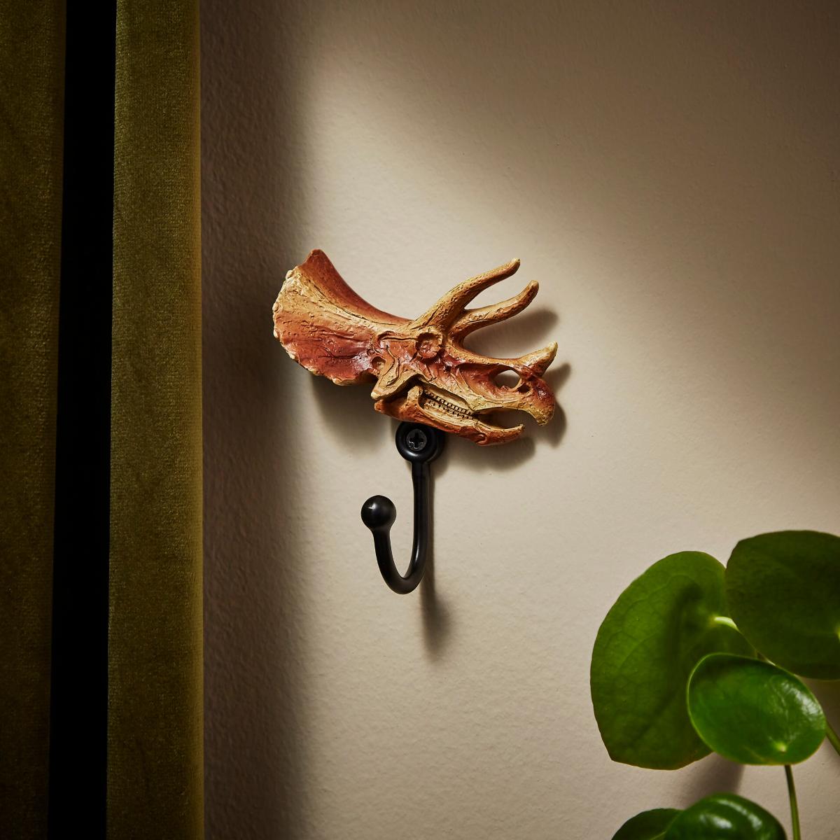 **In collaboration with the Natural History Museum*** Triceratops skull design* Pair of curtain hooks* Matt black hardware finish* Part of the Natural History Museum range Featuring a captivating Triceratops skull design, these curtain hooks seamlessly blend modern sophistication with a touch of prehistoric allure. The matte black hardware finish adds a sleek and contemporary touch to your decor, ensuring a stylish yet functional enhancement for your windows. Sold as a pair, these hooks not only secure your curtains with ease but also bring a curated charm to your living space. Please note, this is a left facing curtain hook pair.**Natural History Museum x Dunelm**The Triceratops Hook is part of the Signature Collection. This very special collaboration has been influenced by the Museum’s incredible building, its unique architectural details and unmistakable Victorian décor influencing our contemporary collection, making it possible to being a piece of natural history into your home. © The Trustees of the Natural History Museum, London 2024. All Rights Reserved.