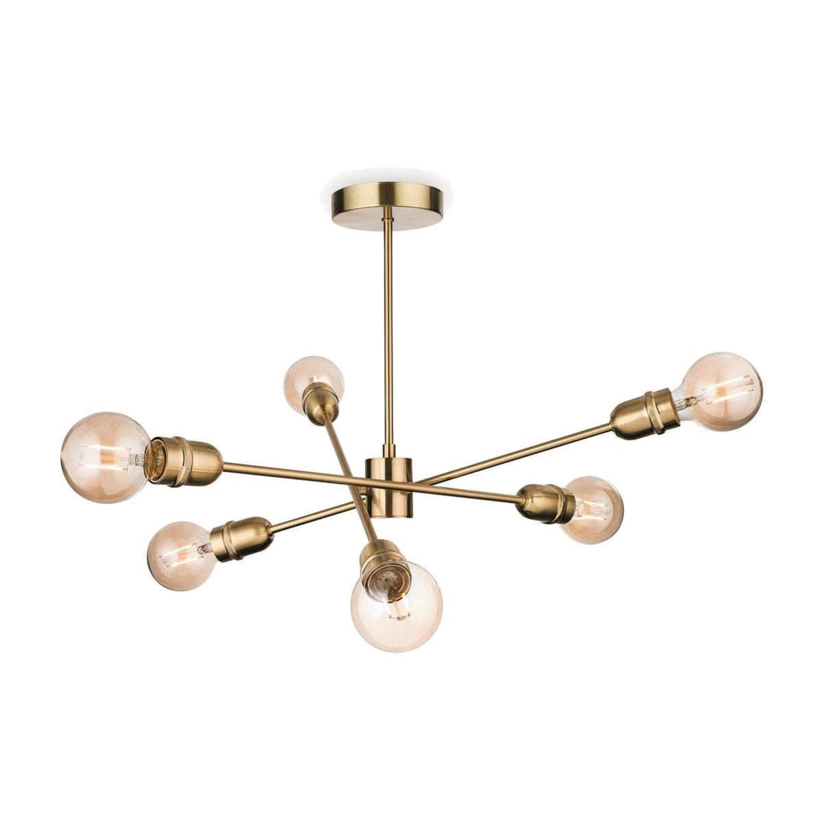 Trident 6 Light Multi Arm Semi Flush Light Brushed Brass, E27 - Brushed Brass