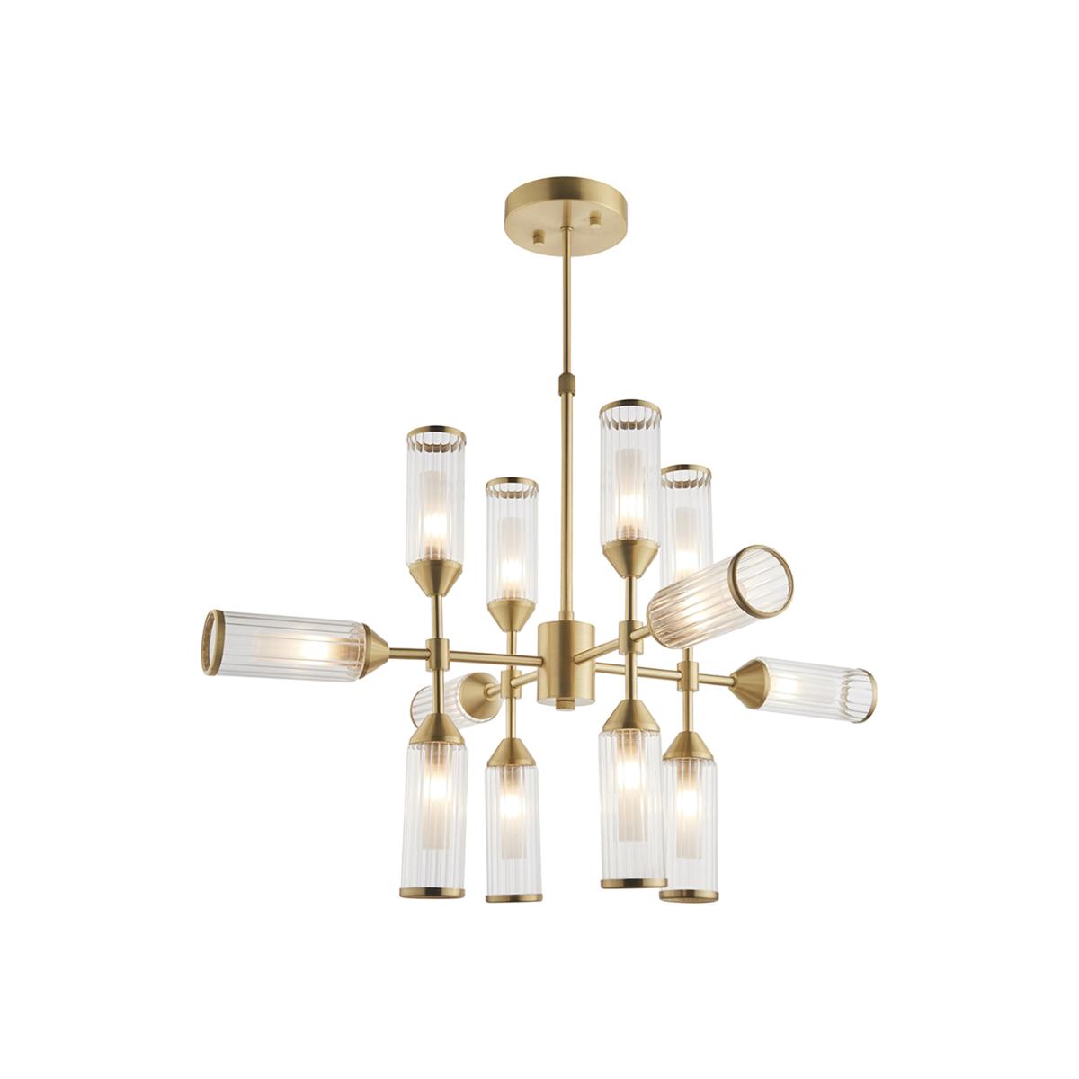 Trieste 12 Light Ceiling Pendant Satin Brass Plate With Clear Frosted Glass - Satin Brass Plate With Clear & Frosted Glass