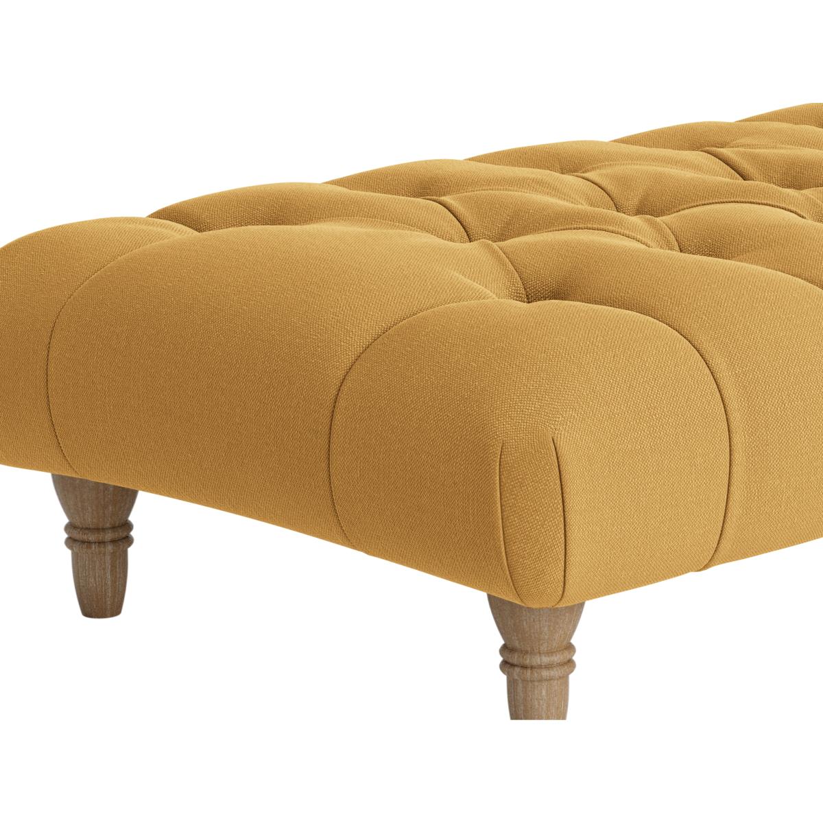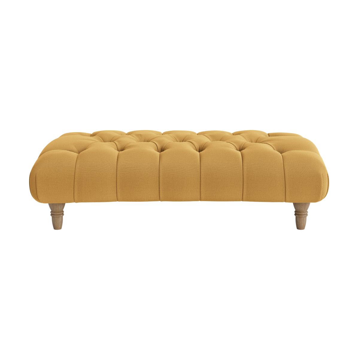 I love this footstool for its bold, tufted design and versatile size, making it an excellent addition to both contemporary and traditional interiors. It works well in living rooms, lounges, or even as a statement piece in a bedroom corner. Pair it with a neutral sofa to add a pop of colour, or style it alongside darker shades for a richer, layered look. Practical styling tips include using it as extra seating or elevating it with a tray for drinks and snacks, which makes it both stylish and functional. Its classic shape and timeless appeal mean it can adapt to a variety of schemes, from relaxed boho to polished modern, making it a smart piece to invest in for flexible decorating.