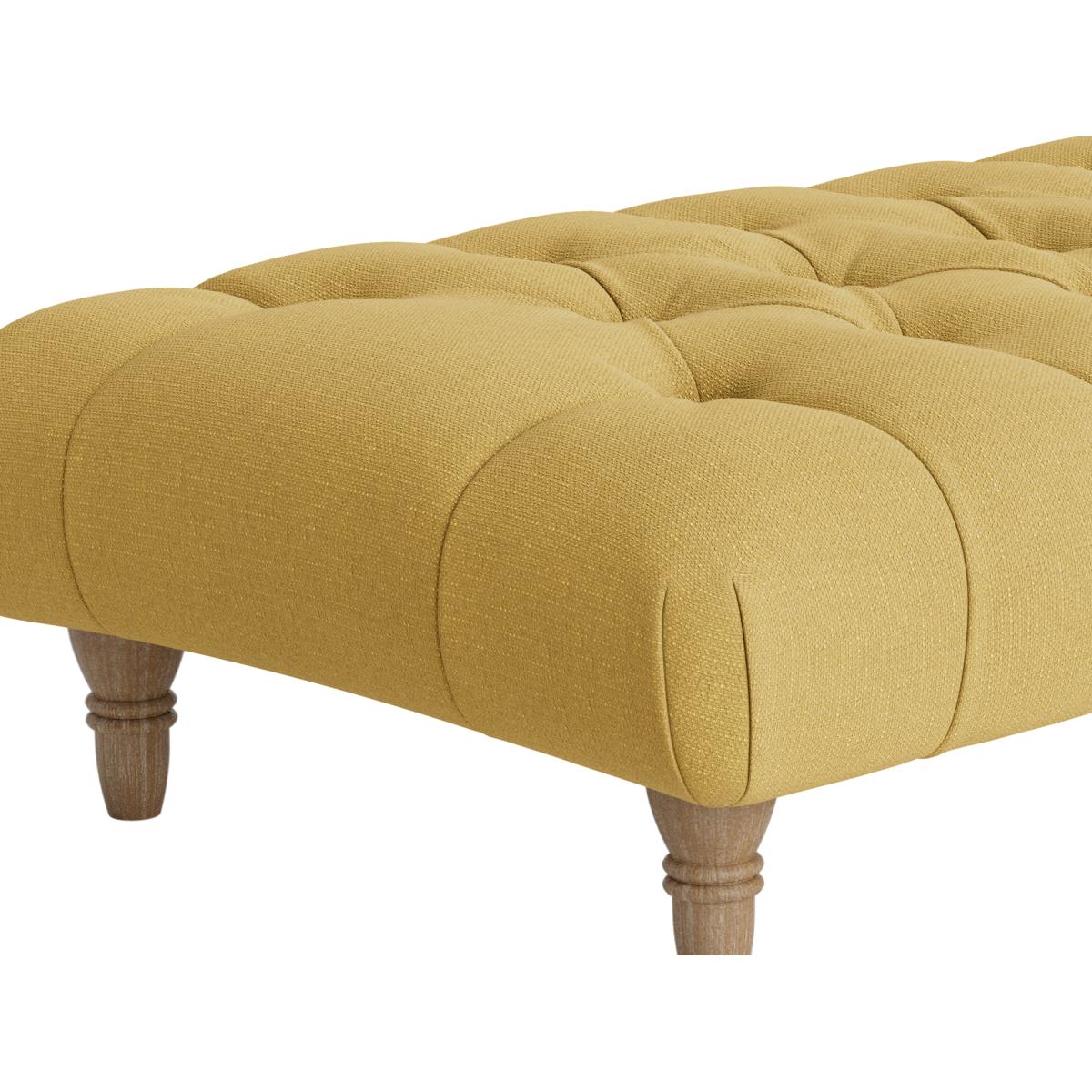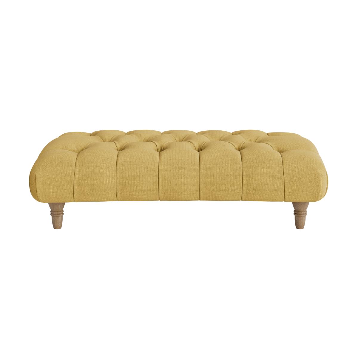 I love this footstool for its versatile and contemporary design, making it a perfect addition to both modern and eclectic interiors. Its upholstered, tufted top adds a touch of sophistication, while the slight colour pop provides visual interest without overwhelming the space. It works well in living rooms or bedrooms as extra seating, a footrest, or even a statement piece in a reading nook. When styling, consider pairing it with understated or contrasting furniture to enhance its colour or texture - for example, a neutral sofa to make the yellow pop, or mixing with natural woods and textiles for a cosy, inviting feel. Its manageable size and shape make it a practical choice for small spaces or rooms where multifunctionality is key.