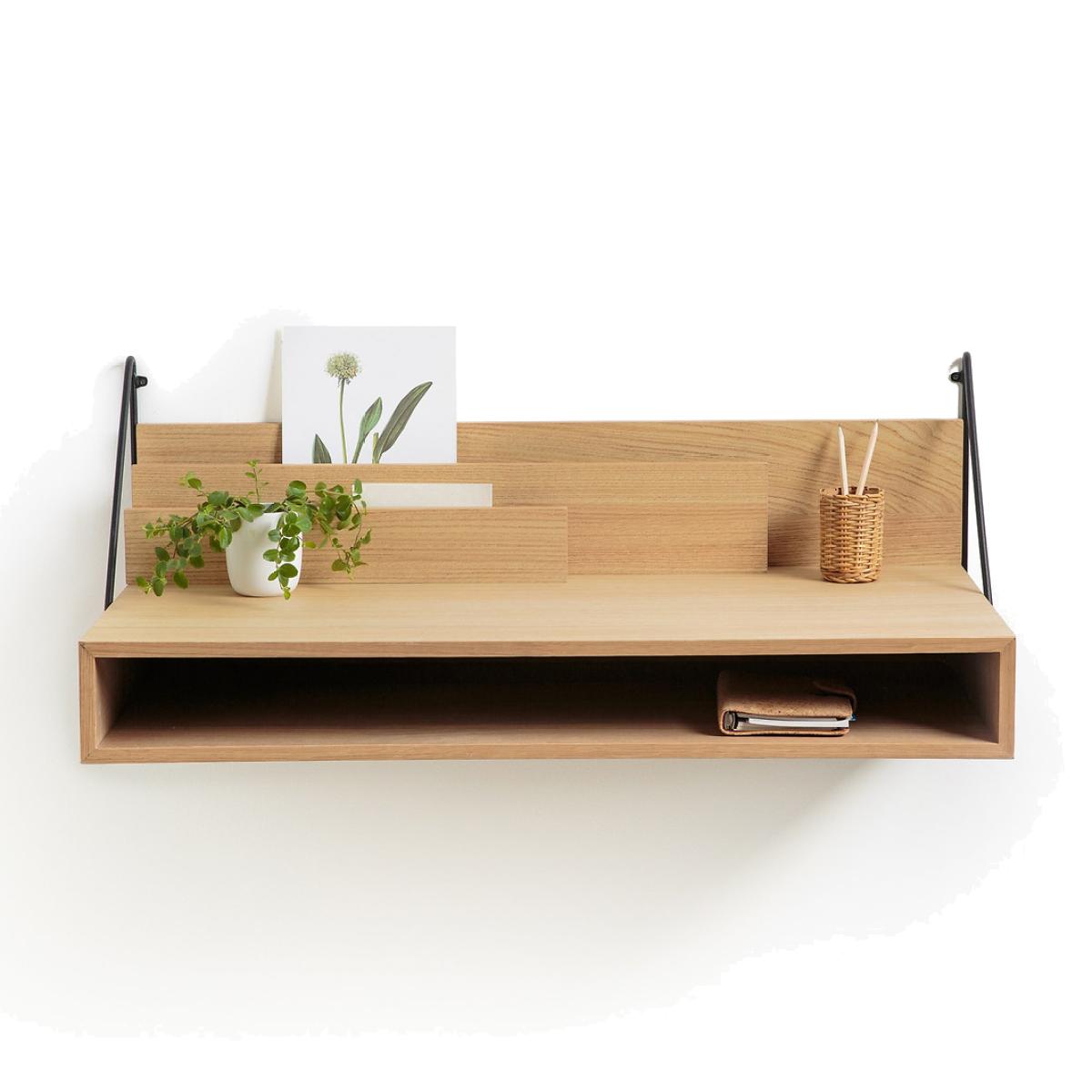 The Trigala wall desk. Combination of wood and metal for this desk with a light and refined design. Very practical, it adapts easily to all spaces. Product Details • Fixes to the wall • 1 large storage niche under the desktop. • For storing keyboard or documents. • Oak veneered MDF with nitrocellulose varnish finish and lacquered metal with epoxy finish. Dimensions. Total: • Width: 91.6cm • Height: 36.5cm • Depth: 44cmDelivery:. This product requires assembly. Available for home delivery Parcel Dimensions: • 1 parcel • 102 x 54 x 20cm • 17.5kg