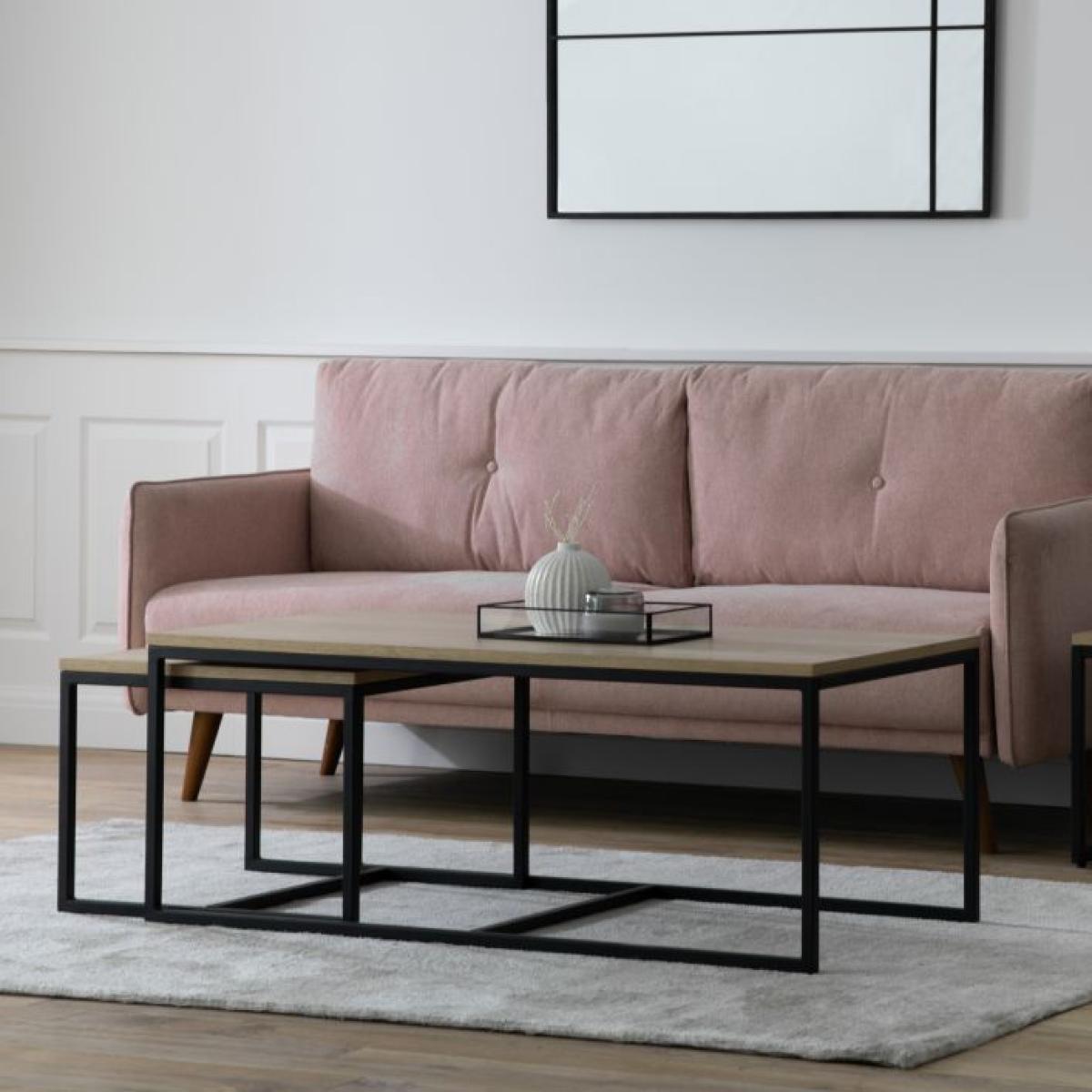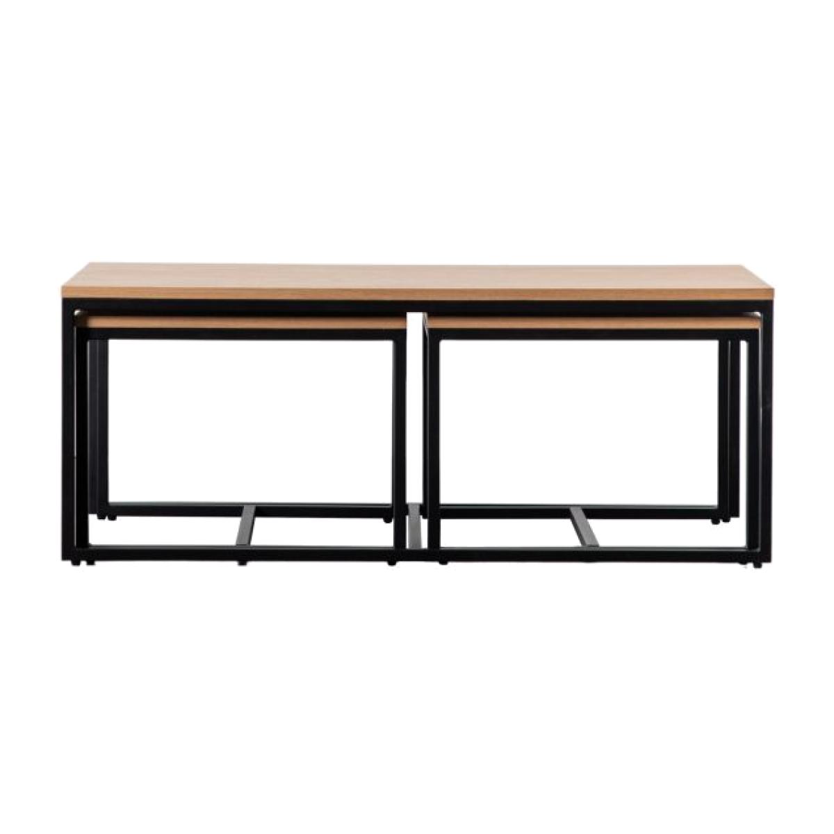 This stunning nest of tables combines clean sharp lines with natural oak veneer tops and matt black metal bases to offer crisp contemporary style. It features a larger table and two smaller ones which fit underneath when not in use. The collection is part of our Packed-Flat Design Project, offering easy delivery to any room in any property, whilst reducing the packaging needed. Easy assembly is required, but all the tools needed are supplied.