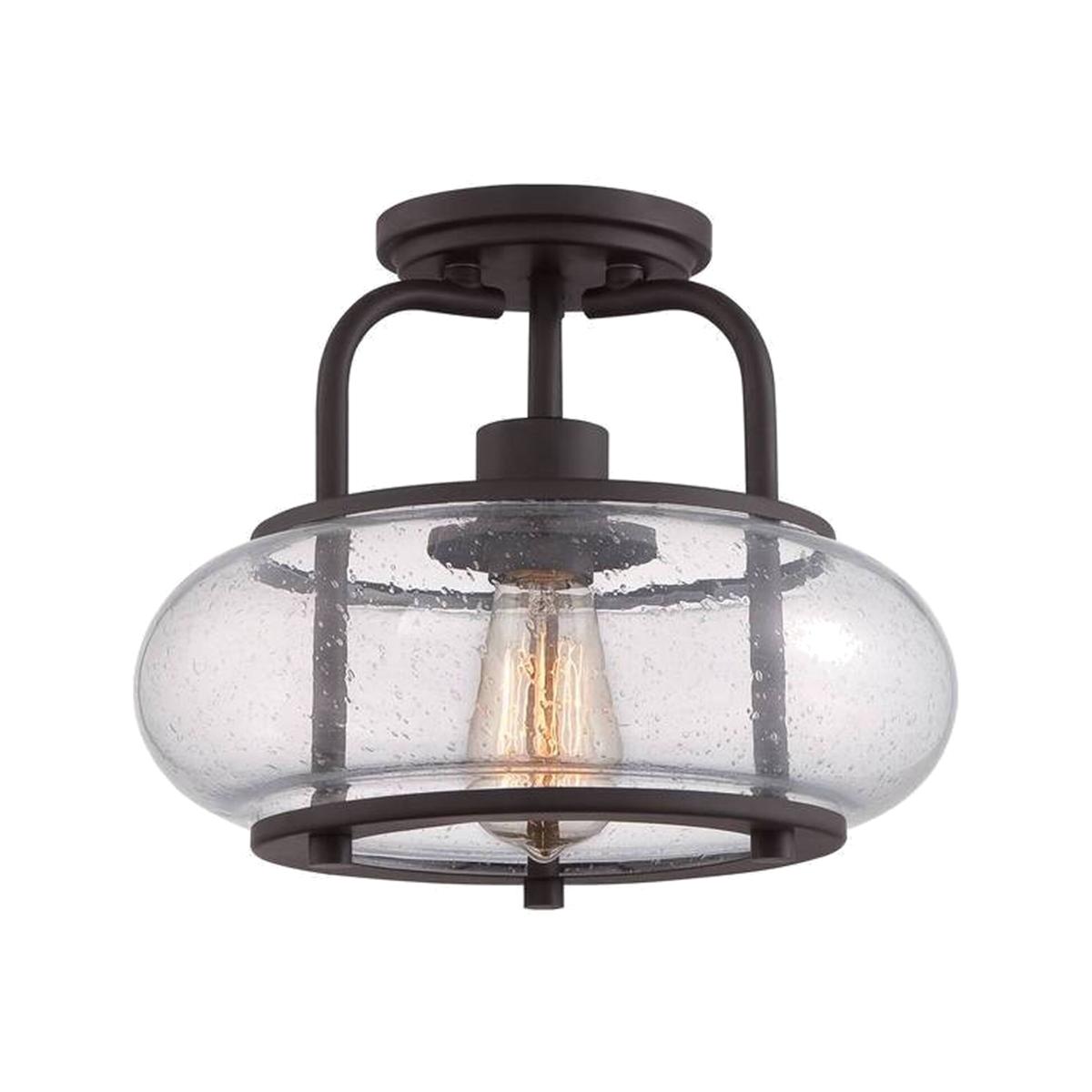 This small semi flush ceiling light features a vintage inspired filament bulb that is not only nostalgic but also very chic. With the Old Bronze finish and the clear seedy glass shade, this fitting brings old world style to modern elegance. Also available in this range 1lt Wall Light, 3lt Chandelier, Medium Semi-Flush, 1lt Pendant, and 3lt Pendant.