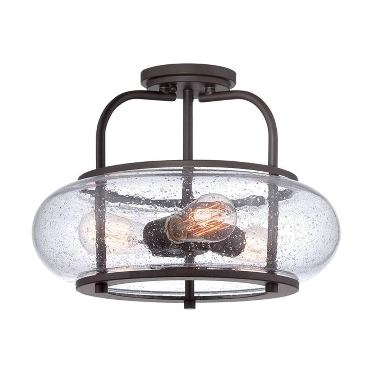This semi-flush ceiling light features a vintage inspired filament bulb that is not only nostalgic but also very chic. With the Old Bronze finish and the clear seedy glass shade, this fitting brings old world style to modern elegance. Also available in this range 1lt Wall Light, 3lt Chandelier, Small Semi-Flush, 1lt Pendant, and 3lt Pendant.