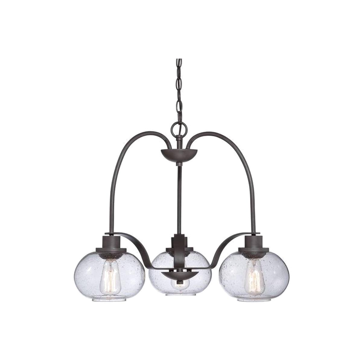 This chandelier features vintage inspired filament bulbs that is not only nostalgic but also very chic. With the Old Bronze finish and 3 clear seedy glass shades, this fitting brings old world style to modern elegance. Also available in this range 1lt Wall Light, Small Semi-Flush, Medium Semi-Flush, 1lt Pendant, and 3lt Pendant.
