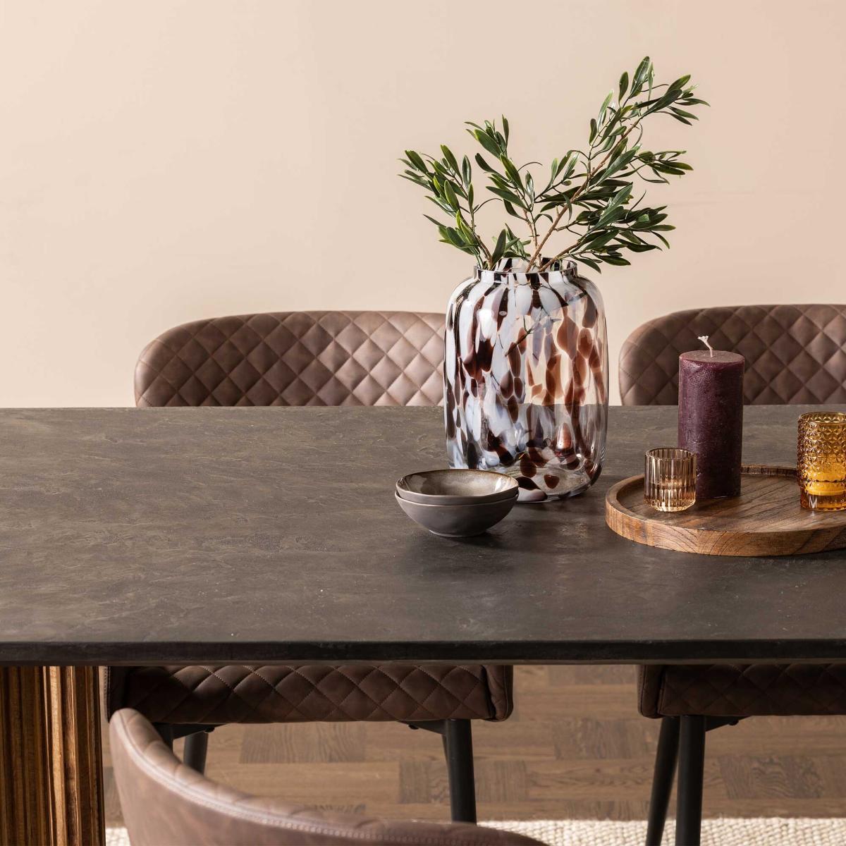I’m a big fan of this Havana dining table for its clean lines and rich teak grain - it feels robust without looking bulky. The warm wood tone works equally well in Scandi, mid-century or more industrial schemes, tying together both neutral and bolder palettes. To style it, keep the centrepiece low: a simple stoneware vase or a set of matte ceramic bowls. Layer in a natural-fibre runner or placemats to soften the look, then mix in leather or woven-seat chairs for texture. Finish with pendant lighting hung low to emphasise the table’s length and bring focus to your dining setup.