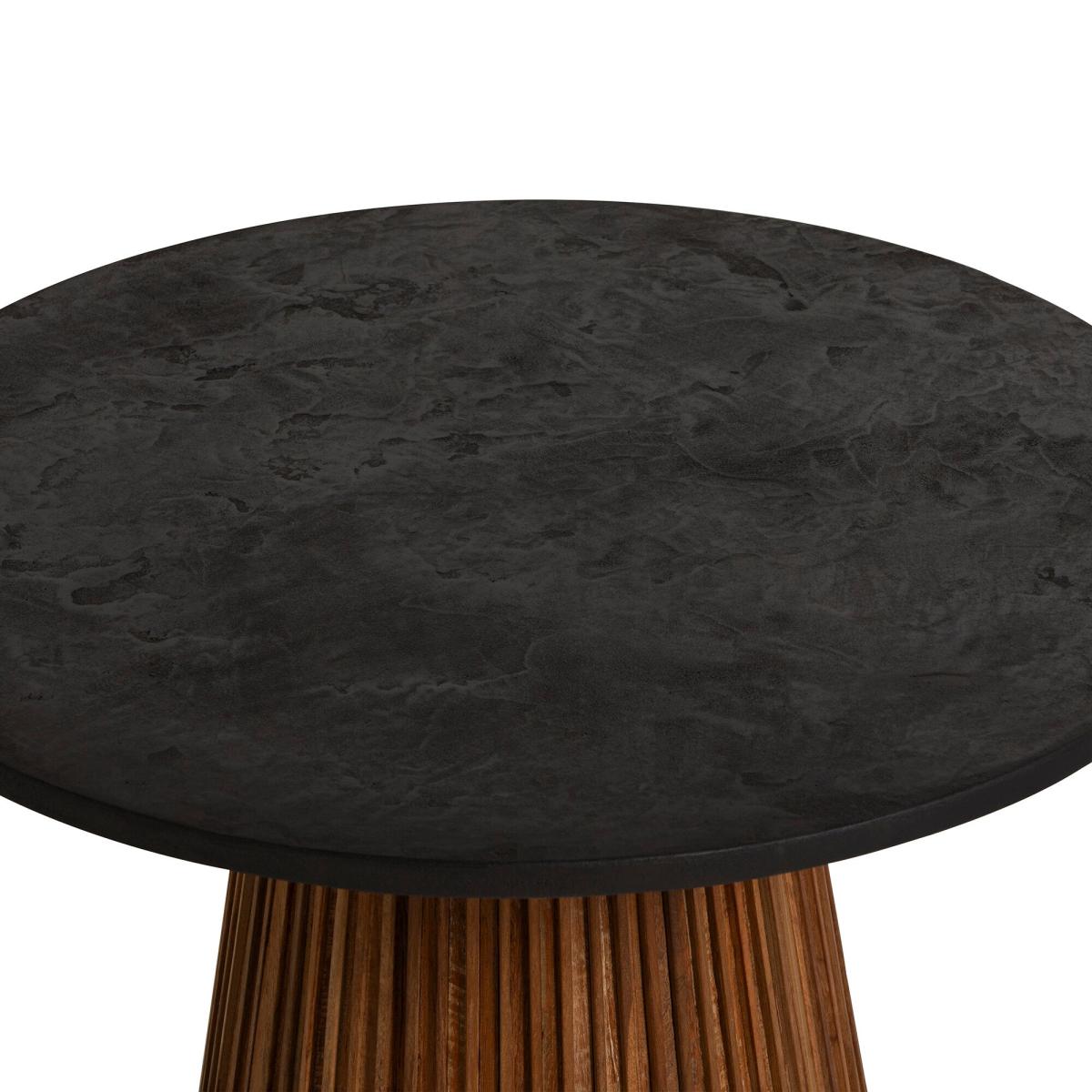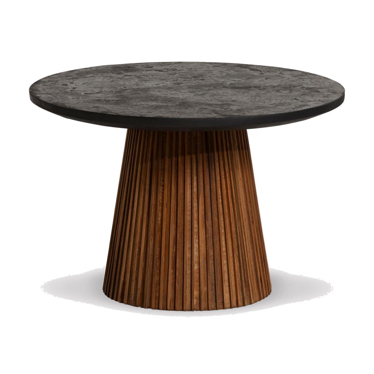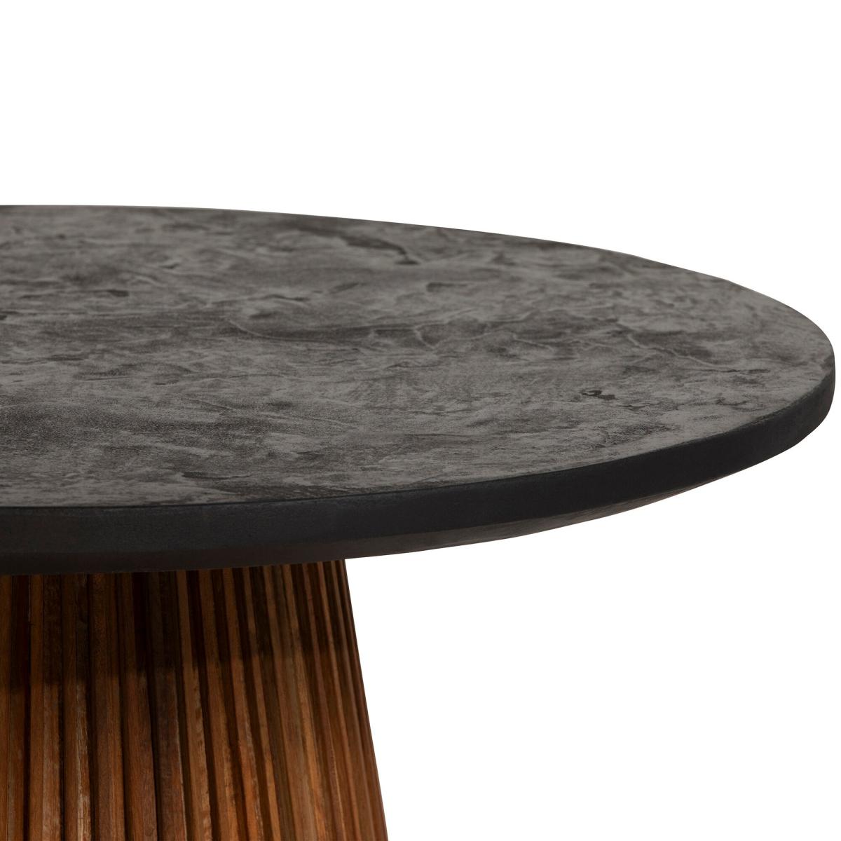 Indulge in rustic refinement with the Trinidad Reclaimed Teak Wood Medium Round Coffee Table. Fashioned from reclaimed teak wood, it embodies eco-conscious elegance. Its captivating black tabletop exudes sophistication, perfectly paired with a fluted wood pedestal base. Embrace the natural allure and timeless charm of this exquisite coffee table, enhancing the ambiance of your living space.