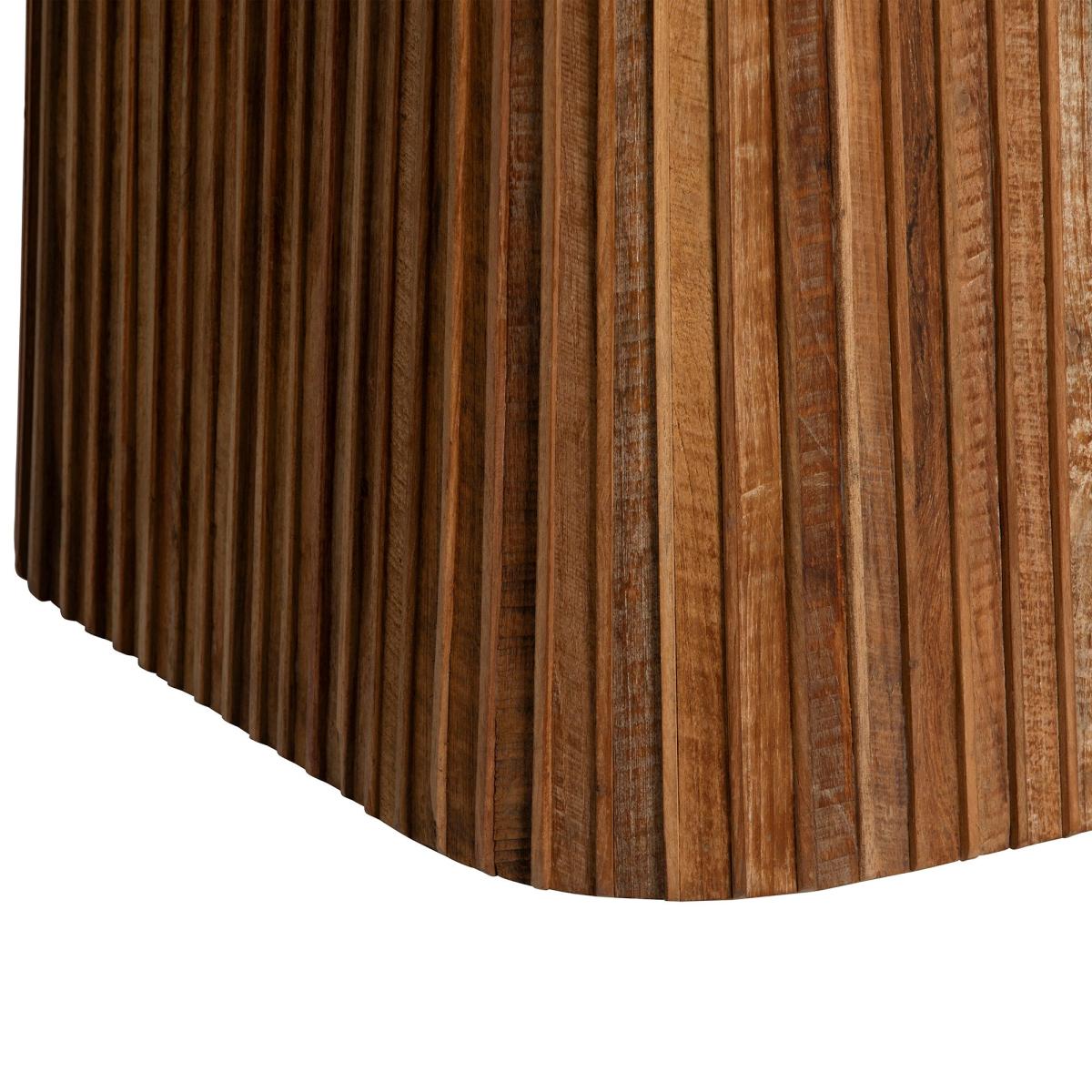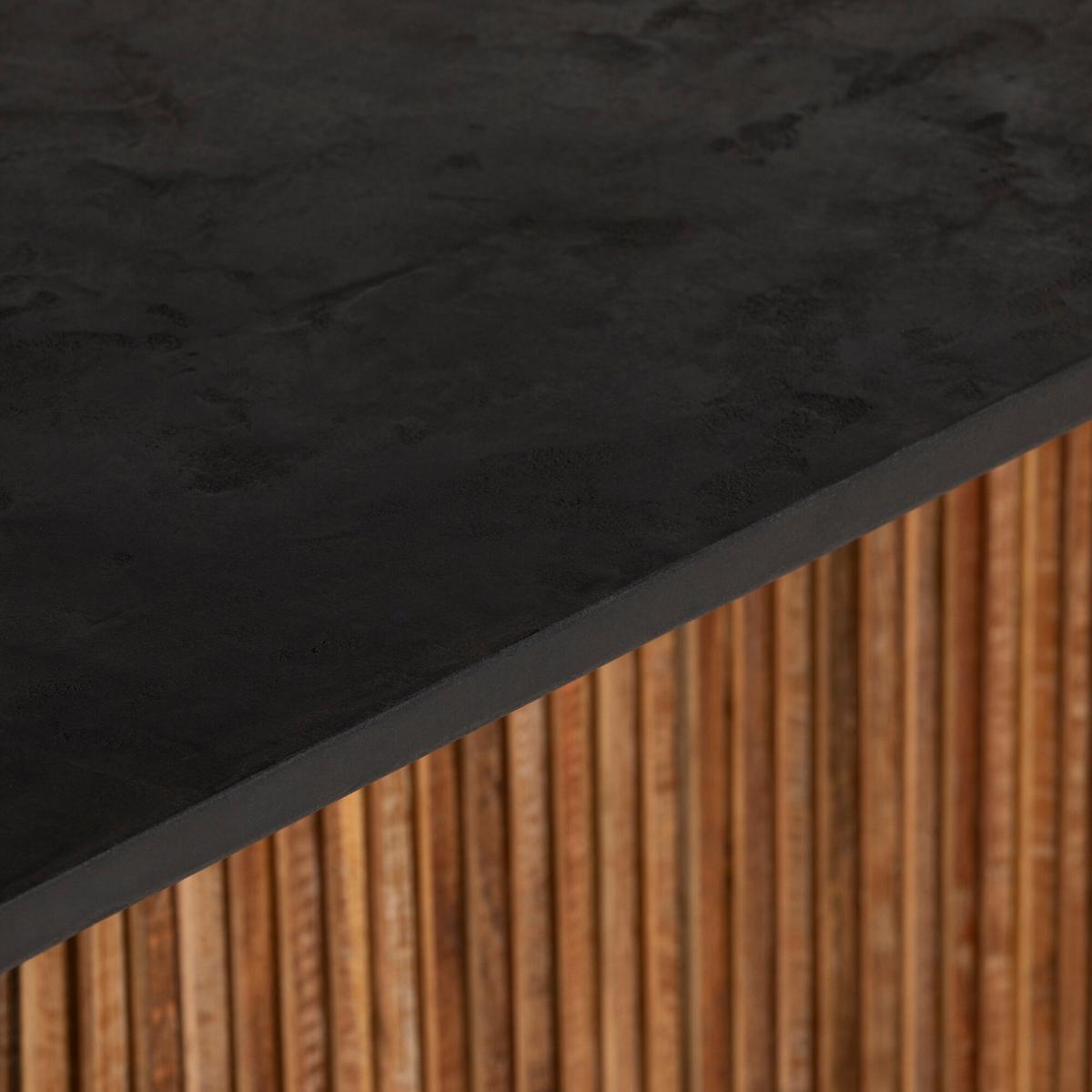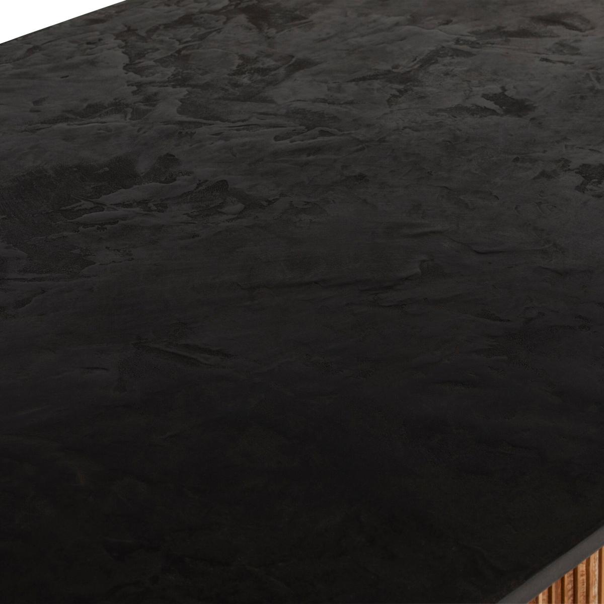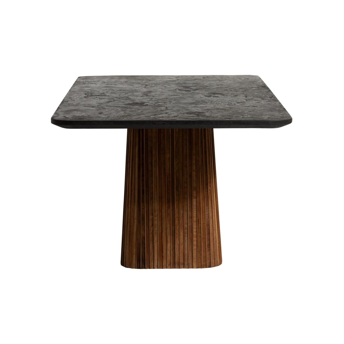 Experience rustic refinement with the Trinidad Reclaimed Teak Wood Pedestal Dining Table. Crafted from reclaimed teak wood, it boasts a stunning black tabletop atop a fluted wood pedestal base. Its eco-conscious design exudes sophistication, enhancing every dining experience. Comfortably seating 8, this table invites gatherings, adding a touch of natural beauty and timeless charm to your dining space.