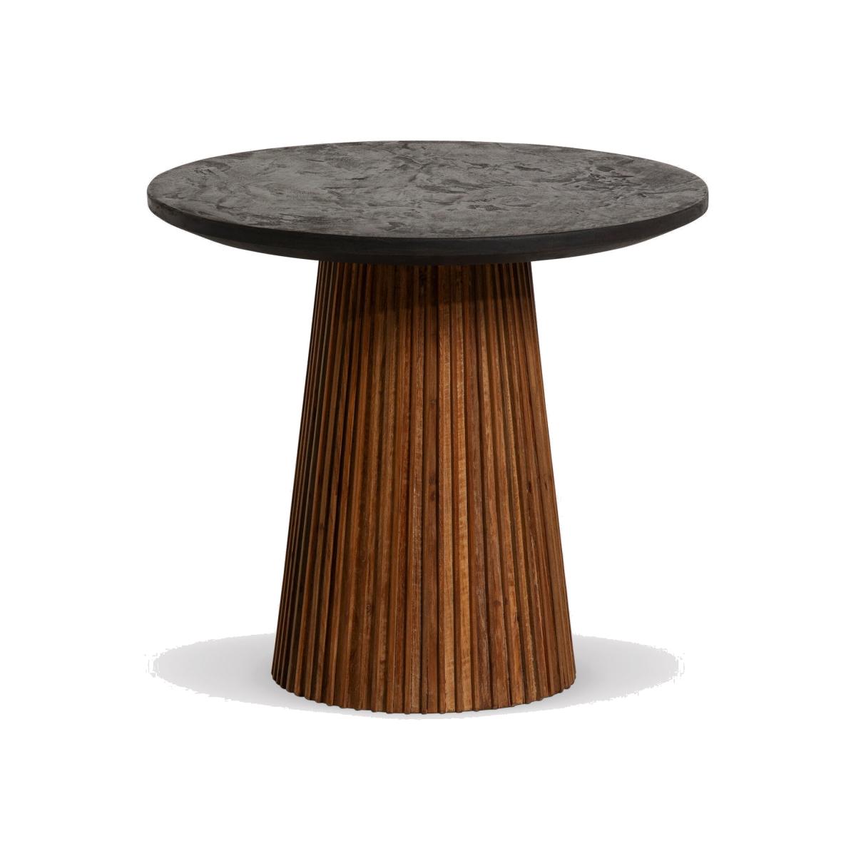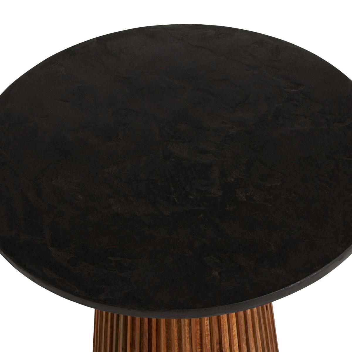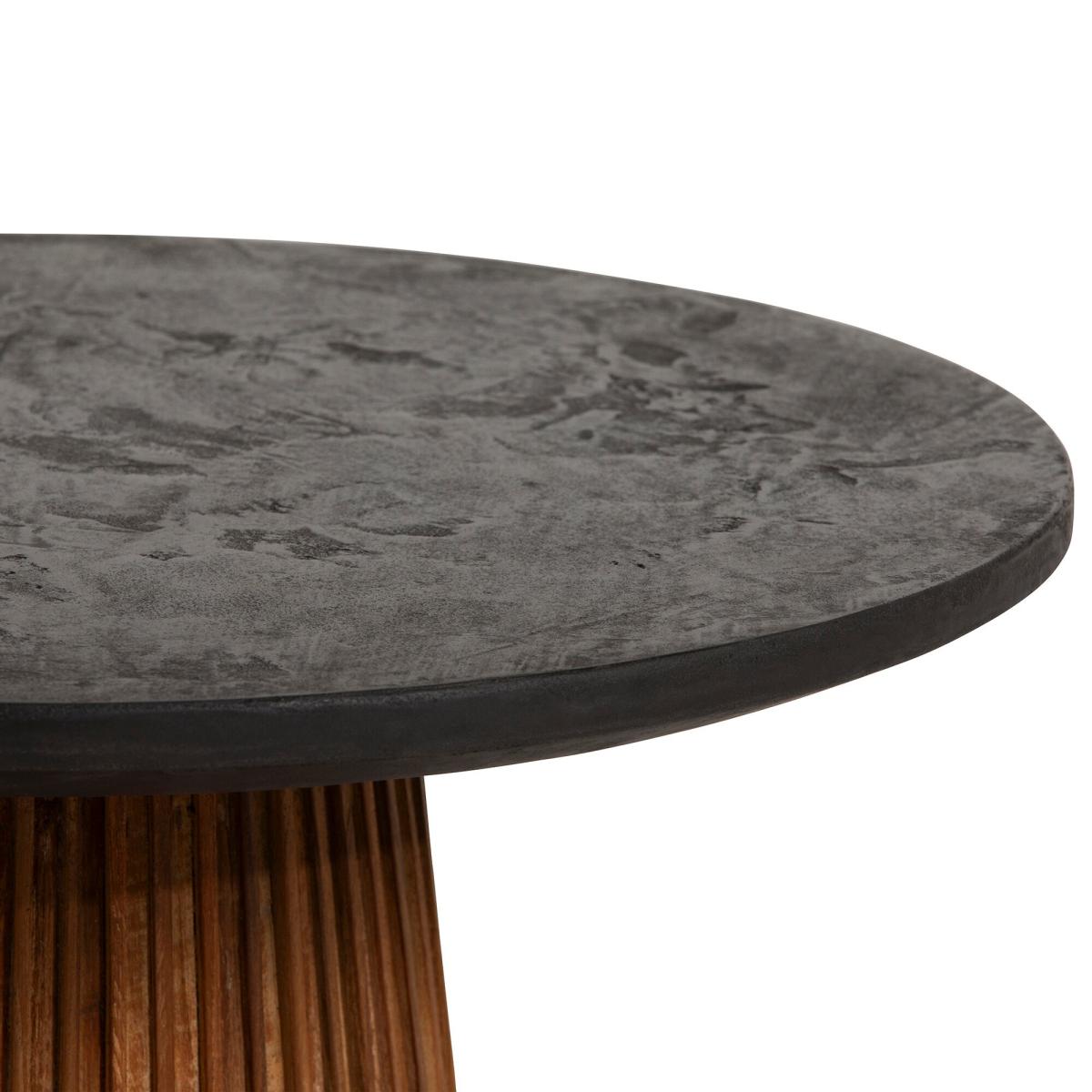 Experience rustic refinement with the Trinidad Reclaimed Teak Wood Small Round Coffee Table. Crafted from reclaimed teak wood, it radiates eco-conscious elegance. Its striking black tabletop exudes sophistication, harmonising flawlessly with a fluted wood pedestal base. Embrace the natural allure and timeless charm of this exquisite coffee table, enriching the ambiance of your living space with understated appeal.