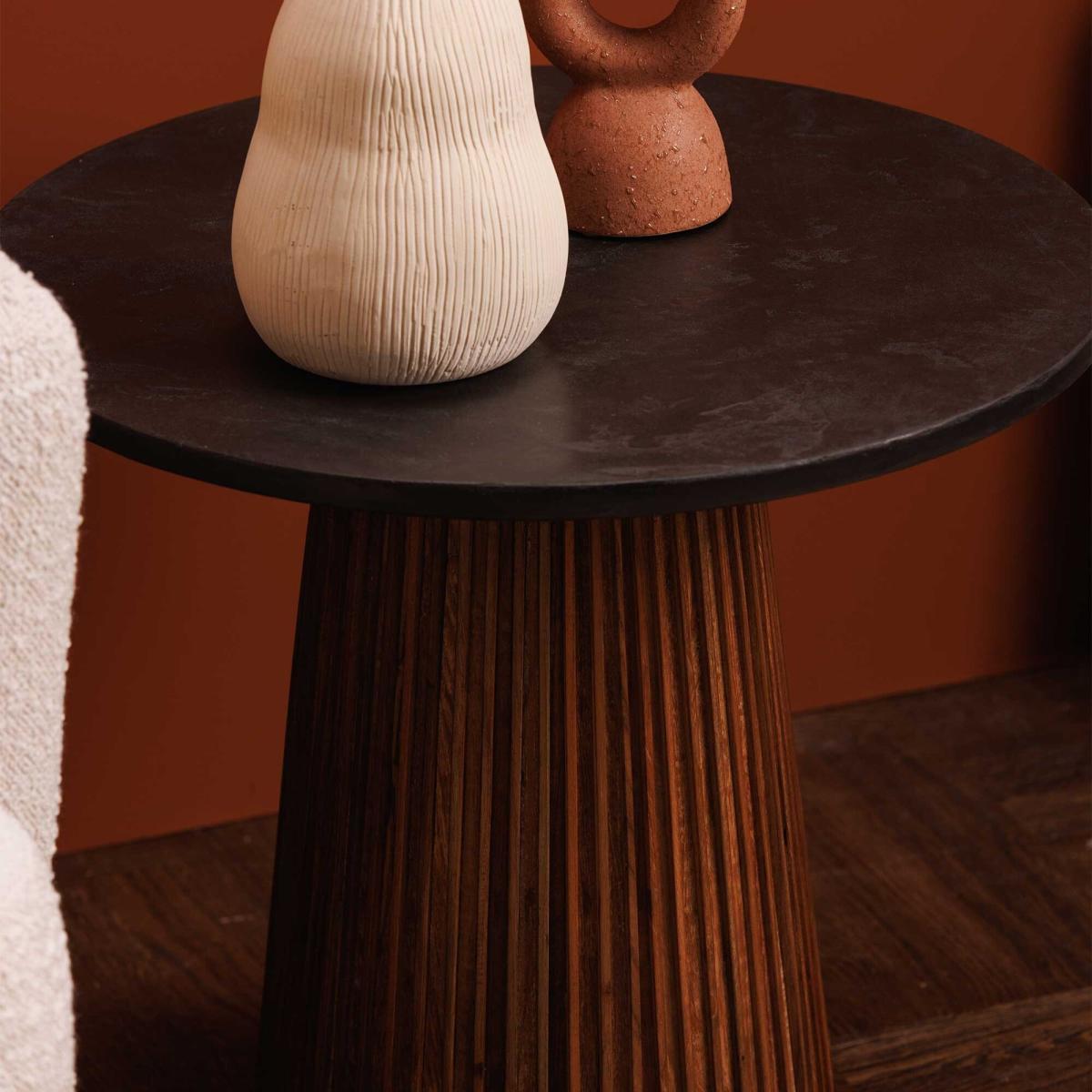 I’m drawn to this little round coffee table for its contrast of a dark, textured top against a warm, fluted wood base - it brings depth without dominating a room. It suits Scandi, mid-century and contemporary schemes equally well, especially in smaller living areas where its compact footprint is a bonus. To style it, group a couple of ceramics or candles with a slim stack of books and a small plant, then anchor it on a low-pile, neutral rug to define your seating zone.