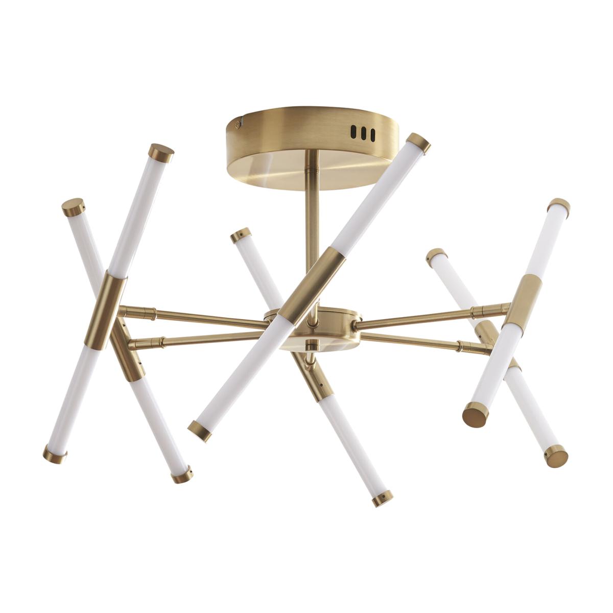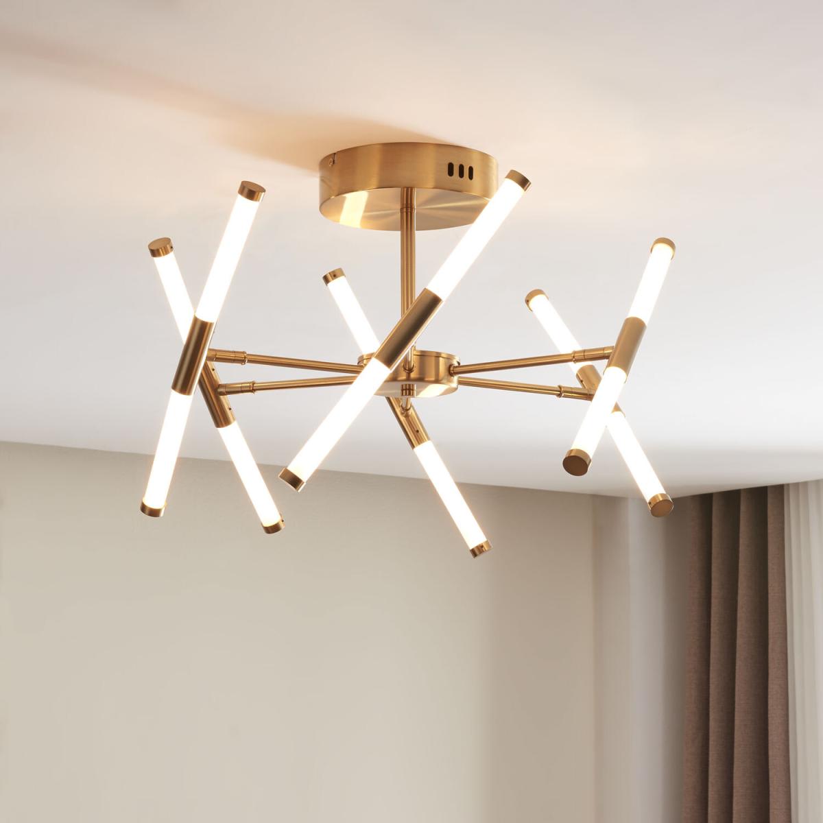 I love this brass ceiling fitting for adding a touch of modern sophistication to a variety of interiors. Its sleek, geometric design works particularly well in contemporary or Scandinavian spaces, but it also complements eclectic styles when paired with warm textures. The brass finish offers a timeless appeal, bringing warmth and a subtle luxe feel to the room. For styling, consider using it as a statement piece in open plan living areas or above dining tables, where its unique form can be appreciated. Keep surrounding décor minimal to let the design stand out, or pair it with brass accents for a cohesive look. Practical tip: install it where you need ample, evenly distributed lighting without cluttering the ceiling space.