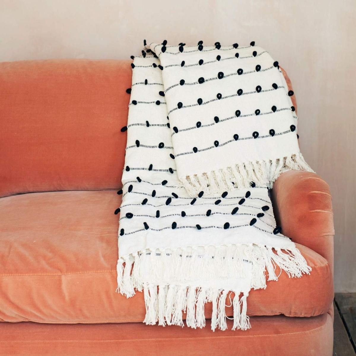 I love the black and white throw for its timeless, versatile appeal. It works particularly well in contemporary or minimal interiors, adding a graphic yet cozy touch. For styling, drape it casually over a sofa or armchair to create a relaxed vibe, or fold it neatly at the foot of a bed for a touch of effortless elegance. Its monochrome palette makes it easy to pair with other patterns and textures, so don’t hesitate to mix it with colourful cushions or textured throws for a layered look. Practical and stylish, it’s a great addition for bringing warmth and visual interest to any living space.
