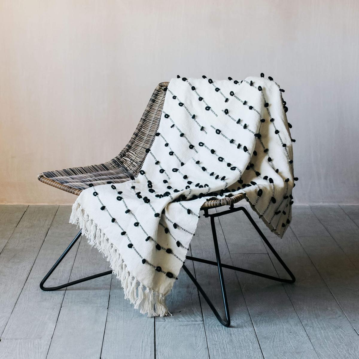 A monochrome version of our bestselling Trinx collection, this Scandinavian style throw has fabulous organic textures and contrasting, pulled wool detailing. Drape over you sofa for instant cosiness and warmth when the evenings draw in.