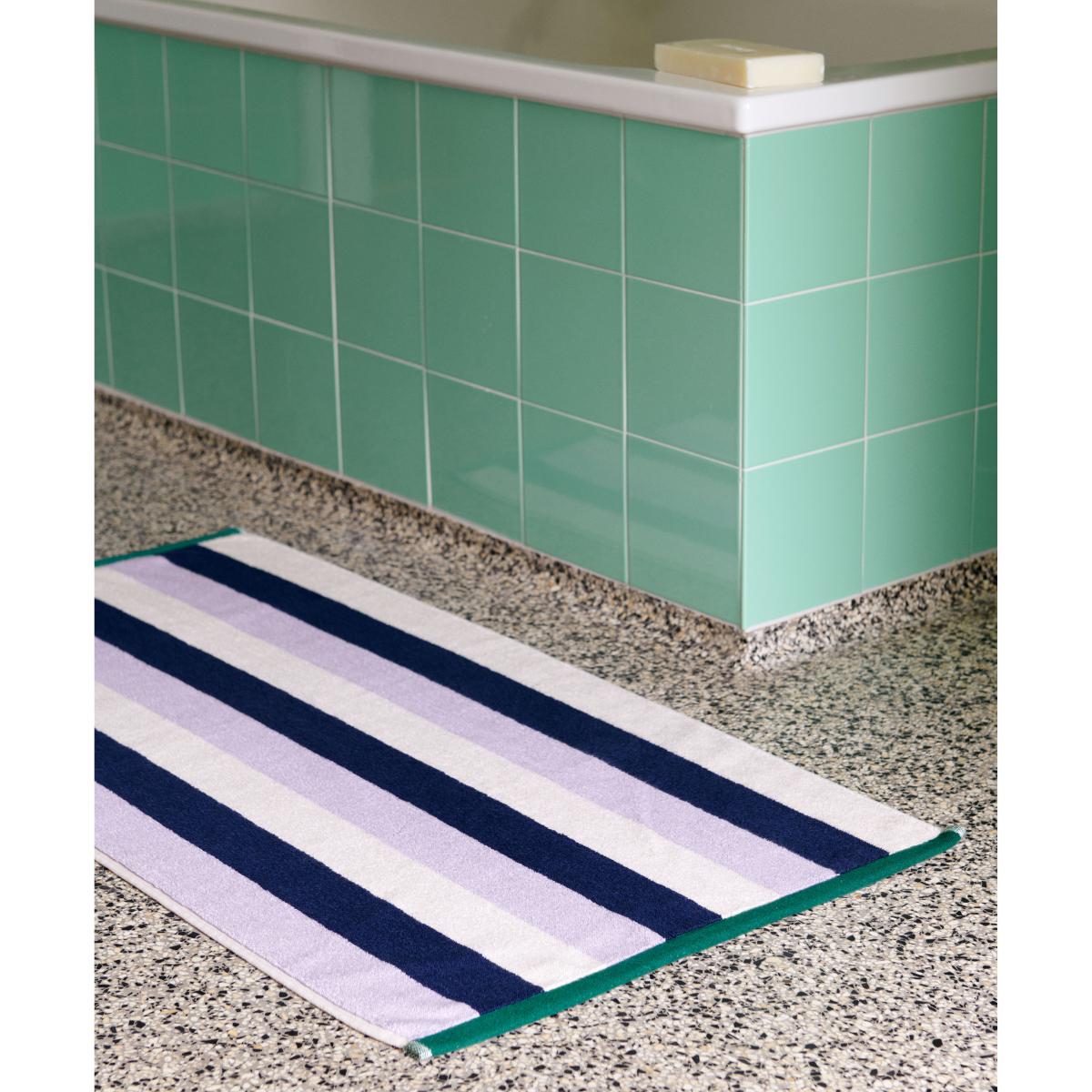 This bathroom mat is a practical yet stylish choice, especially for those who favour a contemporary look with a hint of colour. I love how the striped design adds visual interest without overwhelming the space, making it versatile enough to complement both neutral and more vibrant bathroom palettes. It works particularly well in coastal or modern interiors with clean lines and fresh colour schemes. For styling tips, pair it with crisp white or navy accessories to emphasise its stripes, and consider layering with textured towels or a matching lavender soap dispenser for a cohesive finish. Its sizeable 50x95 cm dimension makes it perfect for placing in front of the bath or shower, providing both comfort and practicality.