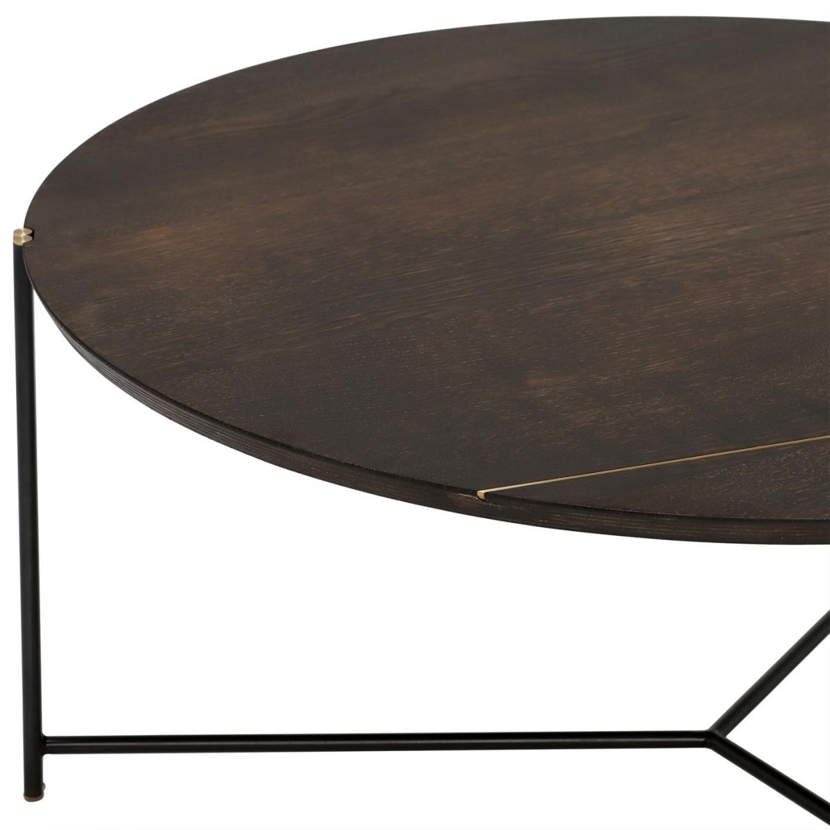 Design. The Trio Large Coffee Table is the perfect addition to any living room, featuring seared oak, blackened steel, and light brass details that sits beautifully in mid-century modern or industrial inspired settings. A sturdy choice that will be perfect for entertaining or relaxing in your living room with a cup of tea, the Trio Large Coffee Table will be a focal point in any home.