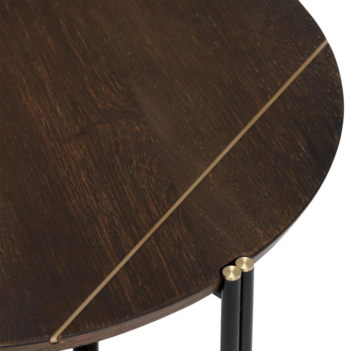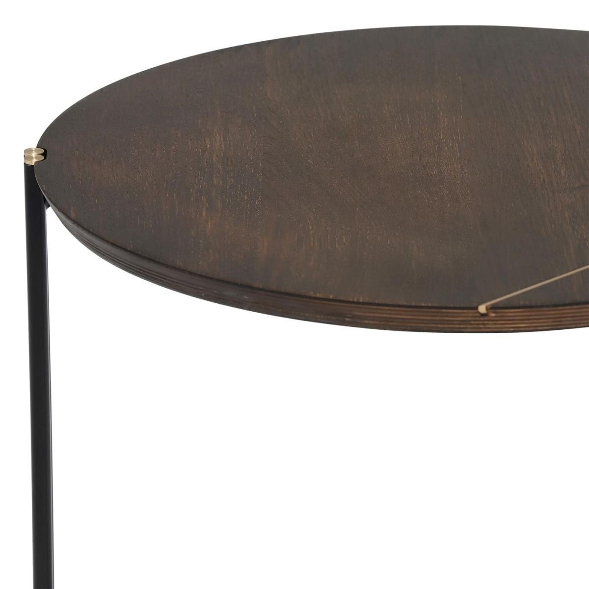 Design. A paired back design that works beautifully in a wide range of interior schemes, the Trio Small End Table is both simple and elegant and introduces versatility in a contemporary home. Hints of brass nod to industrial style whilst the Trio Small End Table’s sleek lines showcase elegance. The crafted seared oak top makes this small end table a durable option while the blackened steel frame punches an industrial aesthetic.
