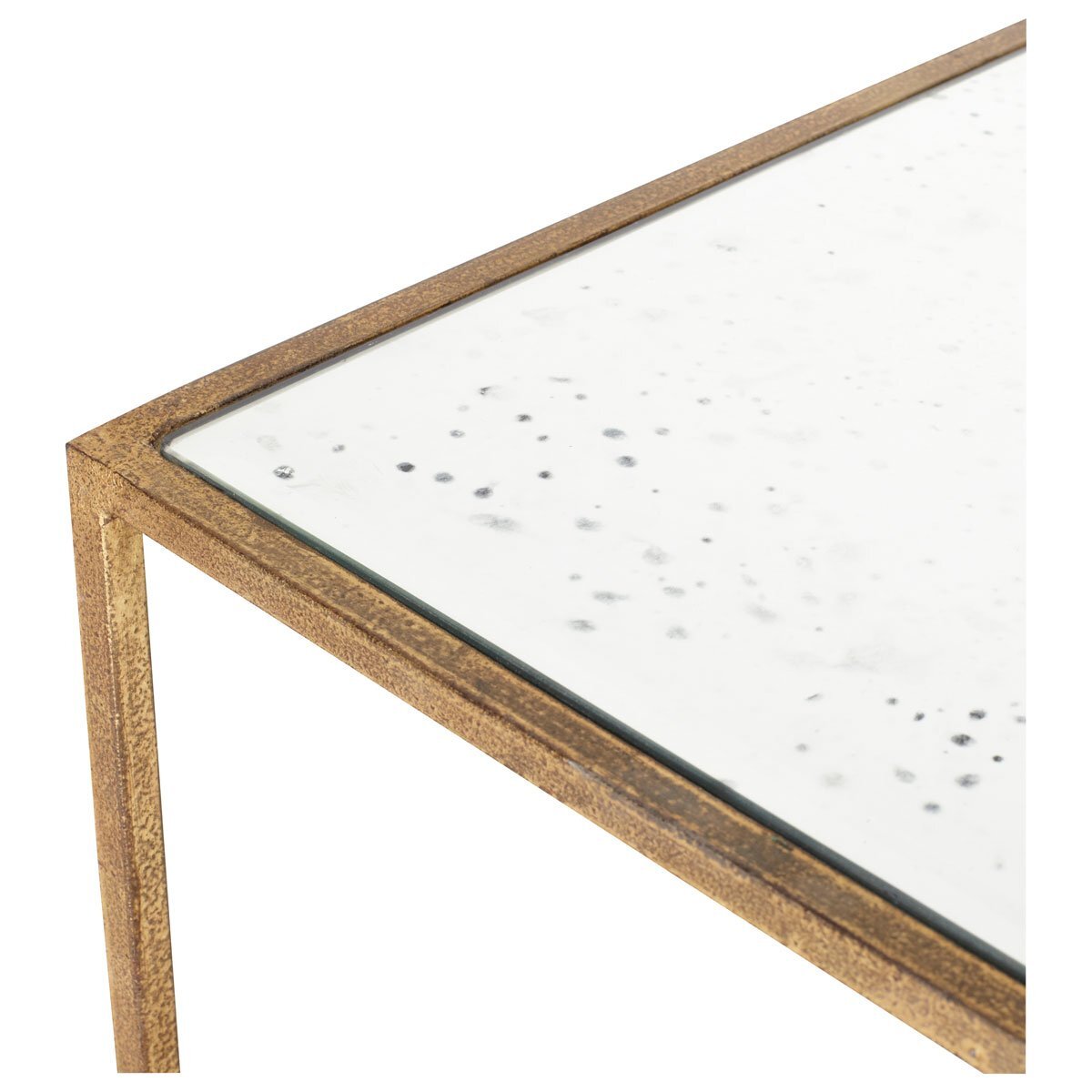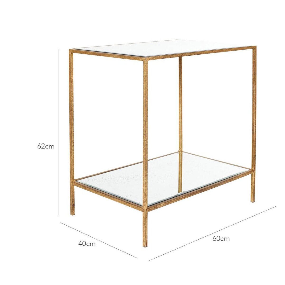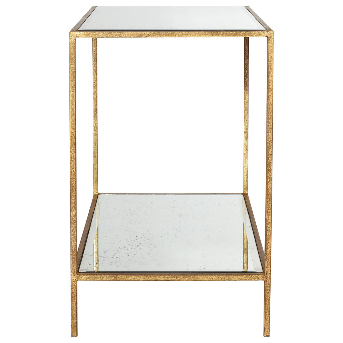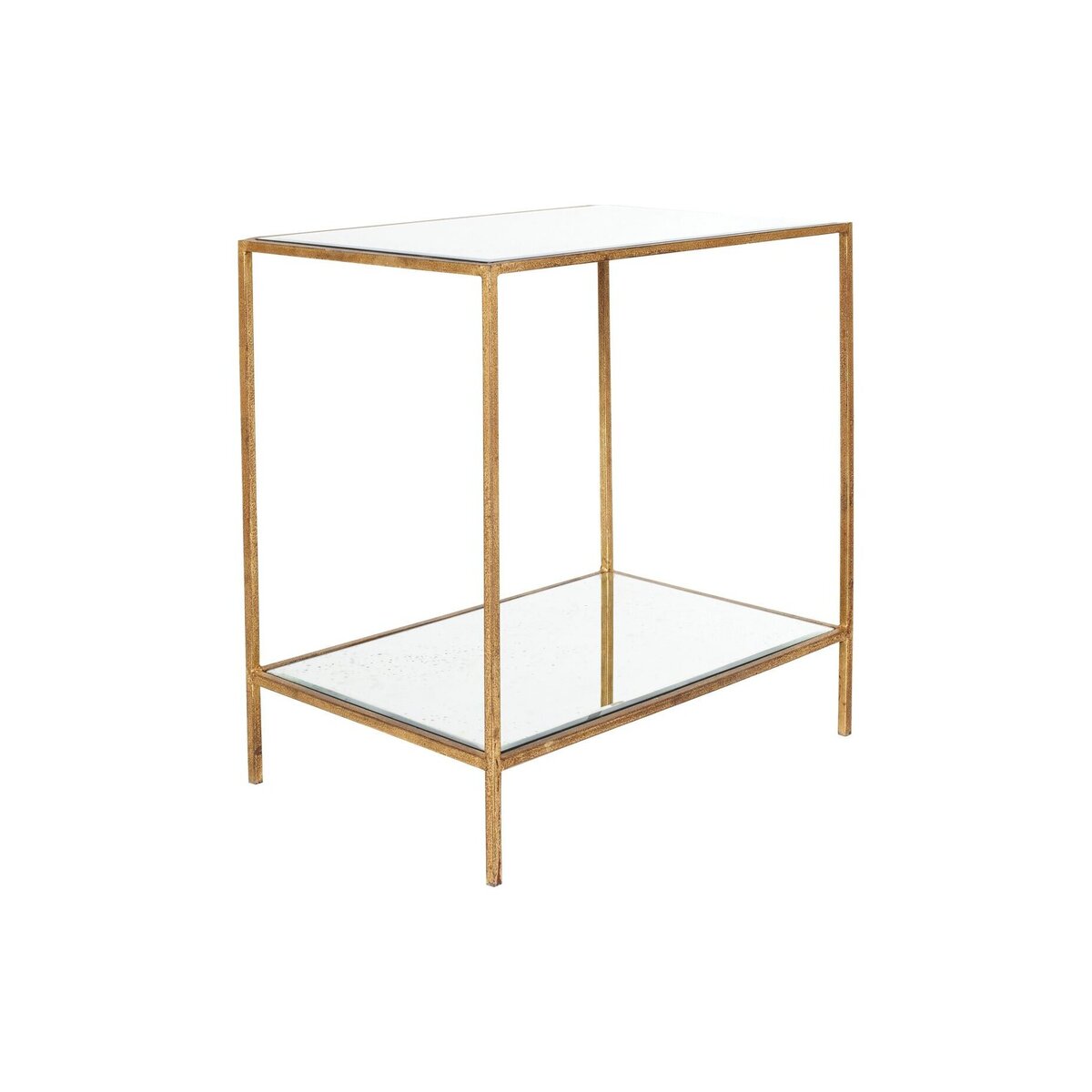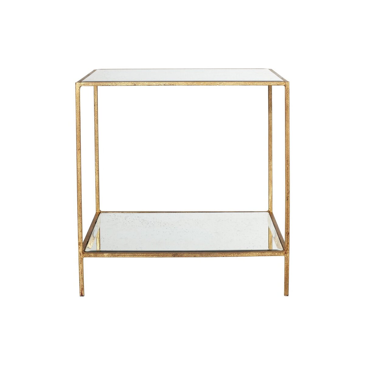 This useful side table features two shelves made of antiqued mirror glass set within a bronze finished, distressed metal frame. The opulent design married with extensive surface space, make this side table both beautiful and practical. Triomphe Side Table - Antiqued Mirror