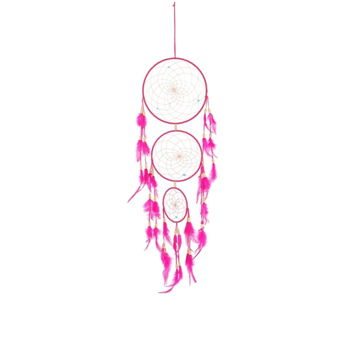Triple Dreamcatcher With Feather Tassels - Pink