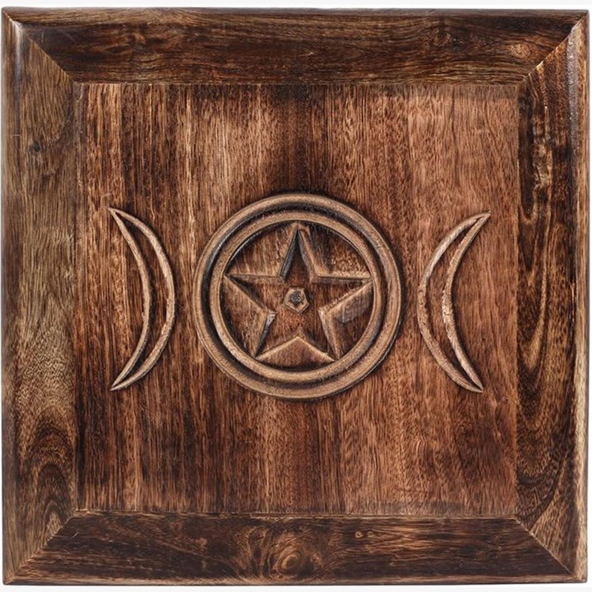 Introducing our Triple Moon Altar Table, a masterpiece for your sacred space. Crafted from mango wood, this medium-sized altar table boasts an exquisitely finished design that radiates elegance. Adorned with a triple moon motif, it embodies the mystique of lunar energy. Elevate your rituals and ceremonies with this captivating table that seamlessly blends aesthetics and functionality. Embrace the symbolism of the triple moon while infusing your spiritual corner with natural beauty and grace.