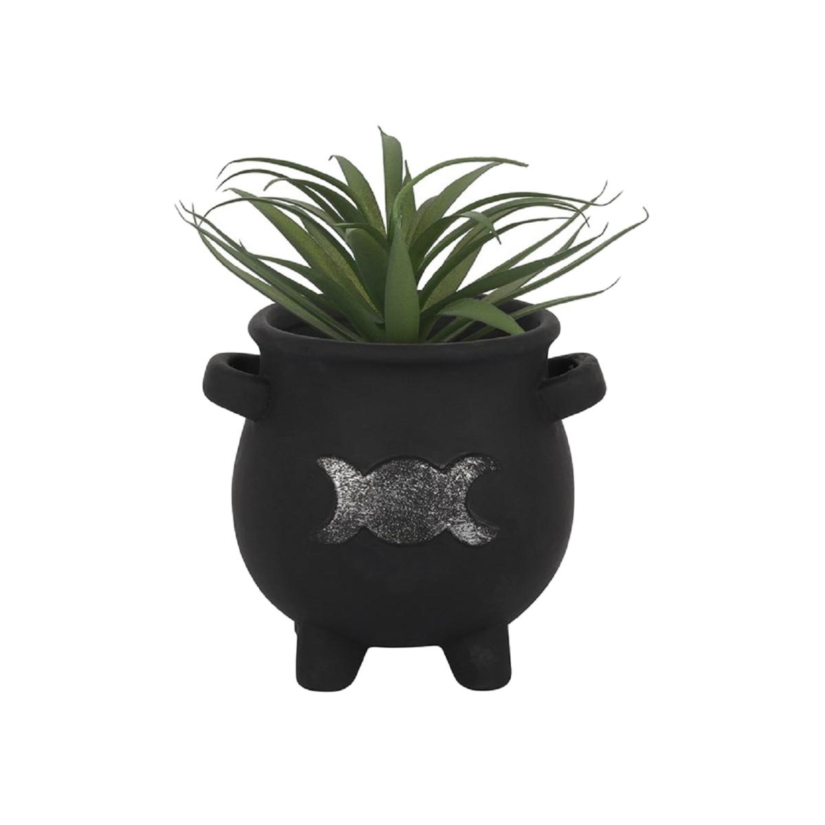 Triple Moon Cauldron Plant Pot Witchy and Stylish - Black