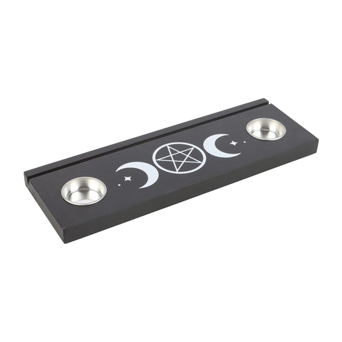Triple Moon Tarot Card Stand With Tealight Holders - Black