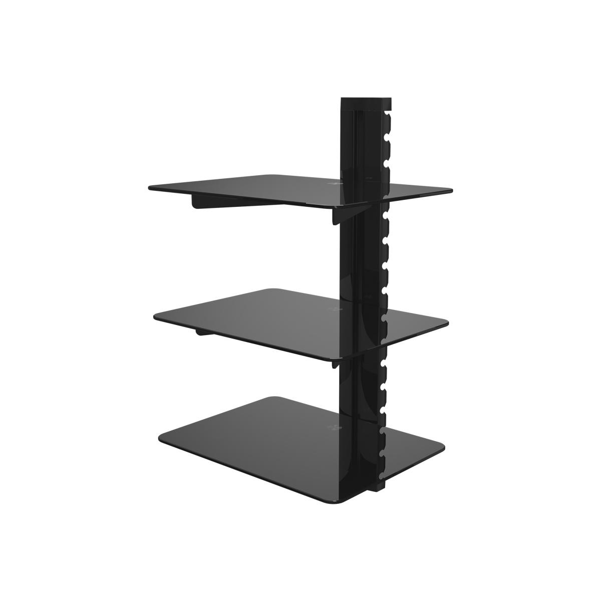 The ideal solution for your AV accessories when you opt for a wall-mounted TV or wish to keep AV accessories out of reach of children or pets, this Triple Shelf AV Shelving Glass is stylish and practical. All three shelves are capable of supporting up to 10kg of equipment each and come with integrated cable management to hide unsightly wires, making these the perfect home for your AV accessories. This modular, stackable design is perfect for storing items such as DVD players, games consoles or Freeview boxes and the shelves can be adjusted to your required level. This shelving is easy to assemble and comes with fixings and fittings provided.