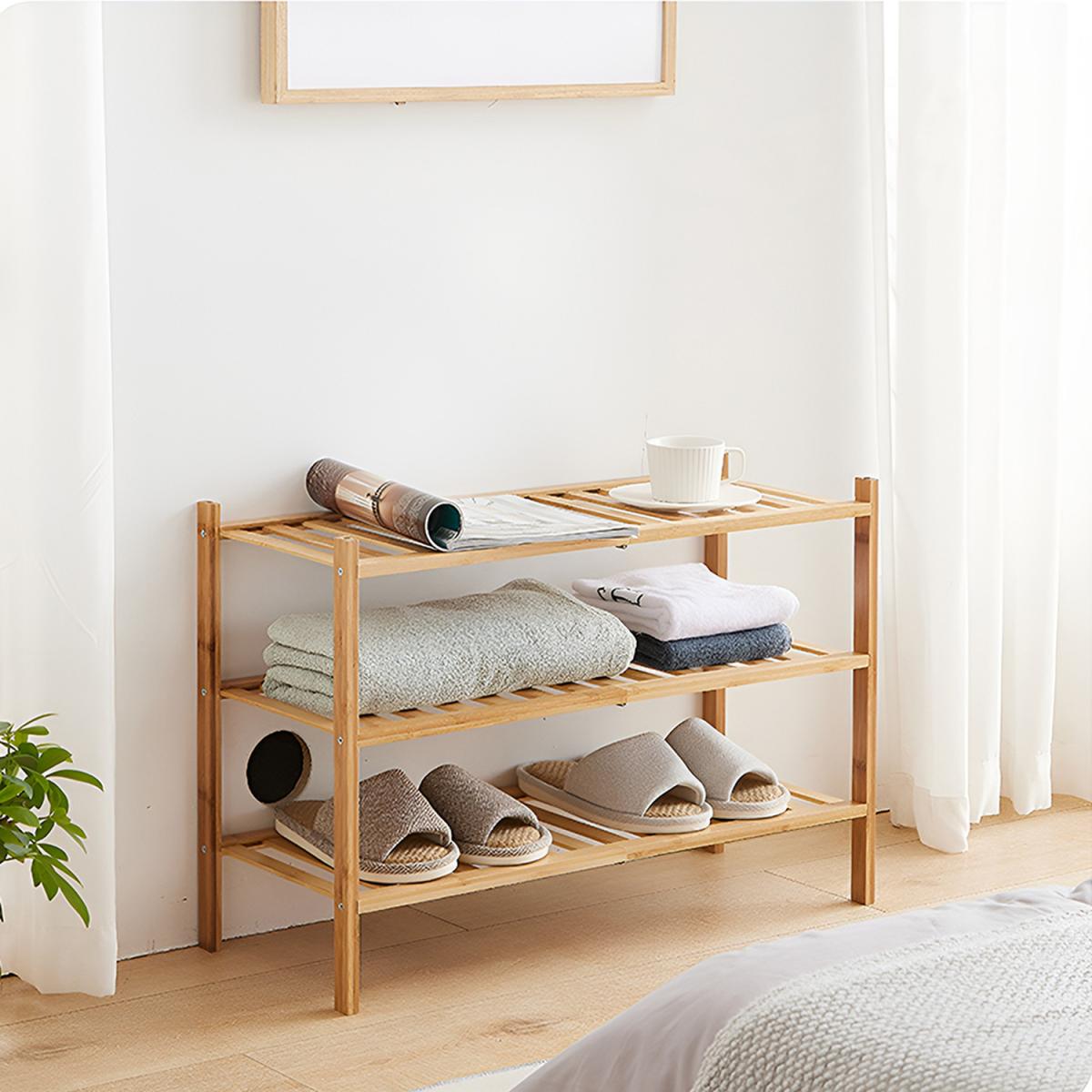 In the busy pace of everyday life, this Triple Tier Bamboo Shoe Rack is the perfect solution for home storage. Ideal for those who appreciate quality and environmental sustainability, its natural bamboo design offers a stylish way to organise your shoes, quickly tidying up your porch or bedroom. Each tier is reinforced with metal hardware to ensure stability and security, even when holding heavier items like tall boots. The fresh bamboo and smooth finish provide both practicality and a touch of elegance. Whether you have a compact flat or a spacious home, this shoe rack fits seamlessly into any setting.