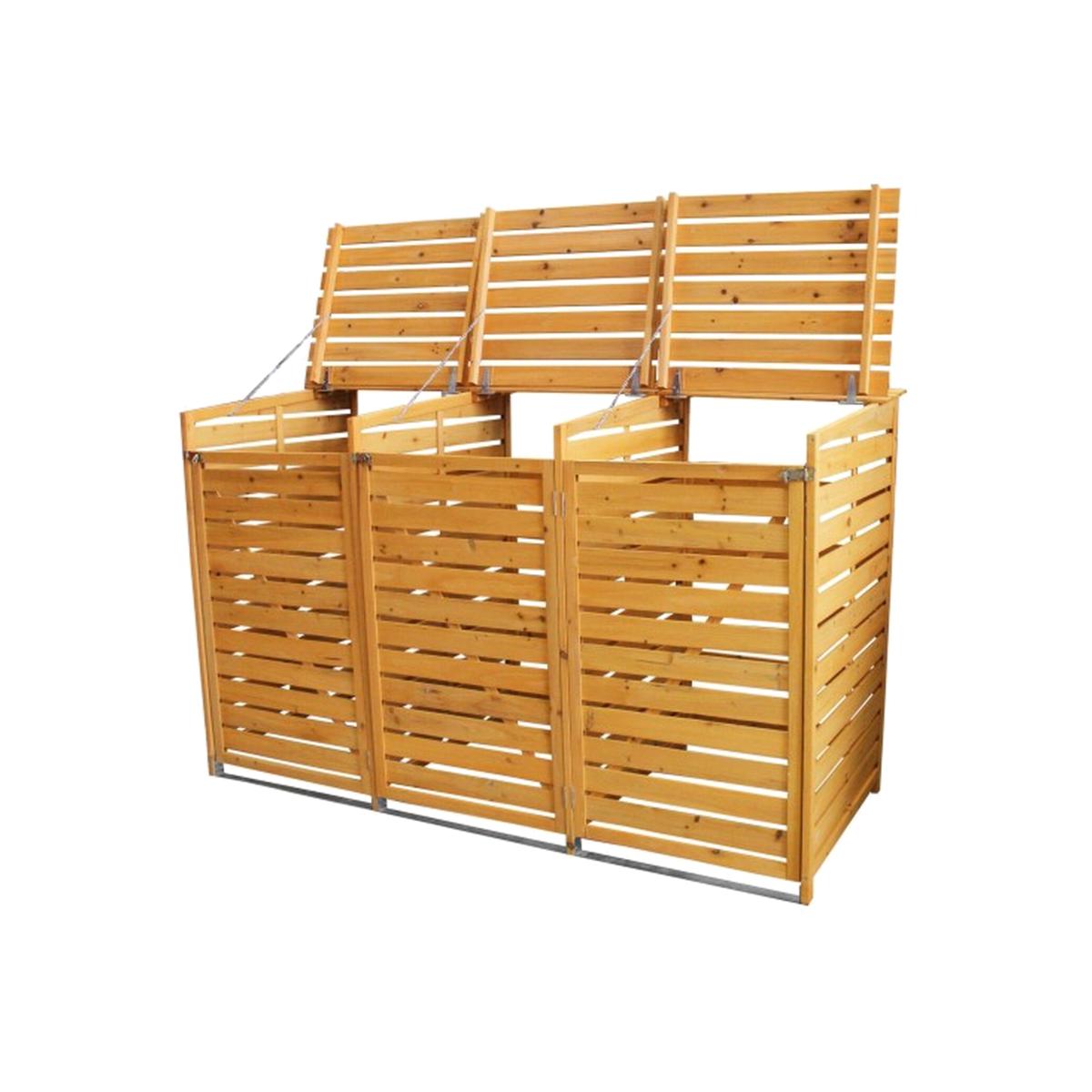 A perfect way to hide unpleasant rubbish bins and maintain a stylish, relaxed garden area, this bin storage shed is made from strong, long-lasting Timber. With three latched doors and simple open/close chain lids, opening and removing your bins is kept quick and easy. The slatted design also ensures bad smells aren't contained in one area. The unit can even act as a shed for garden tools or firewood logs. And we're throwing in a FREE fixing kit so that you can attach your shed to a wall or fence for that added bit of security Comes flat packed with easy to follow instructions. Simple and effective, we know you'll love this appealing storage option.