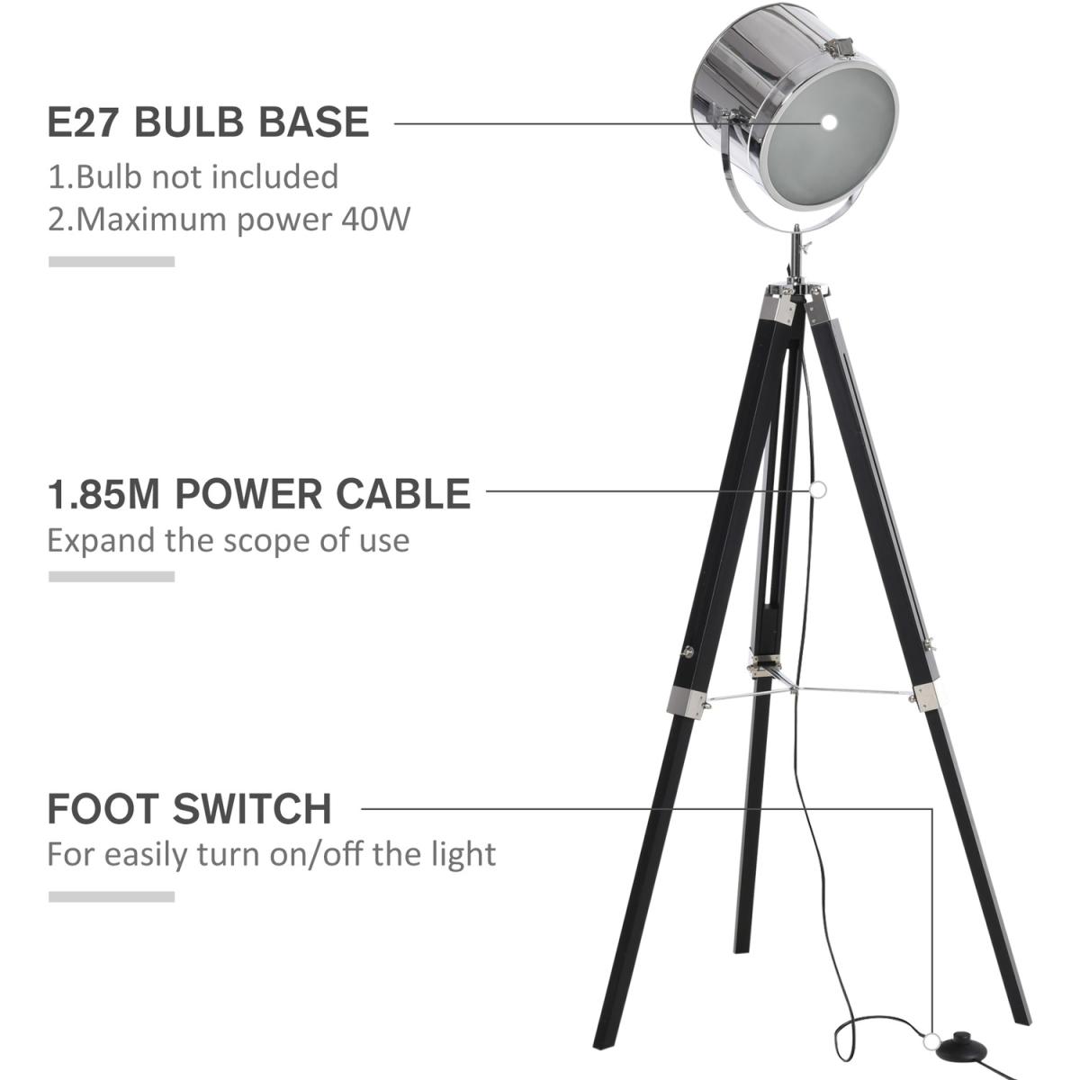 HOMCOM Tripod Floor Lamp with its charming appearance will attract your attention the first time when you meet her. E27 bulb base will give you some artistic and warm lights in the evening. Under the rendering of lights, every scene is like a painting. Just let the HOMCOM tripod floor lamp change your home's feeling, add a touch of class and elegance and make it peaceful and romantic.
