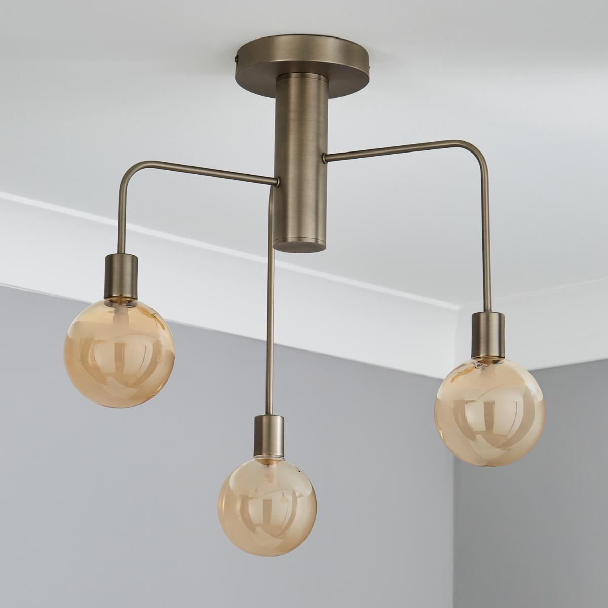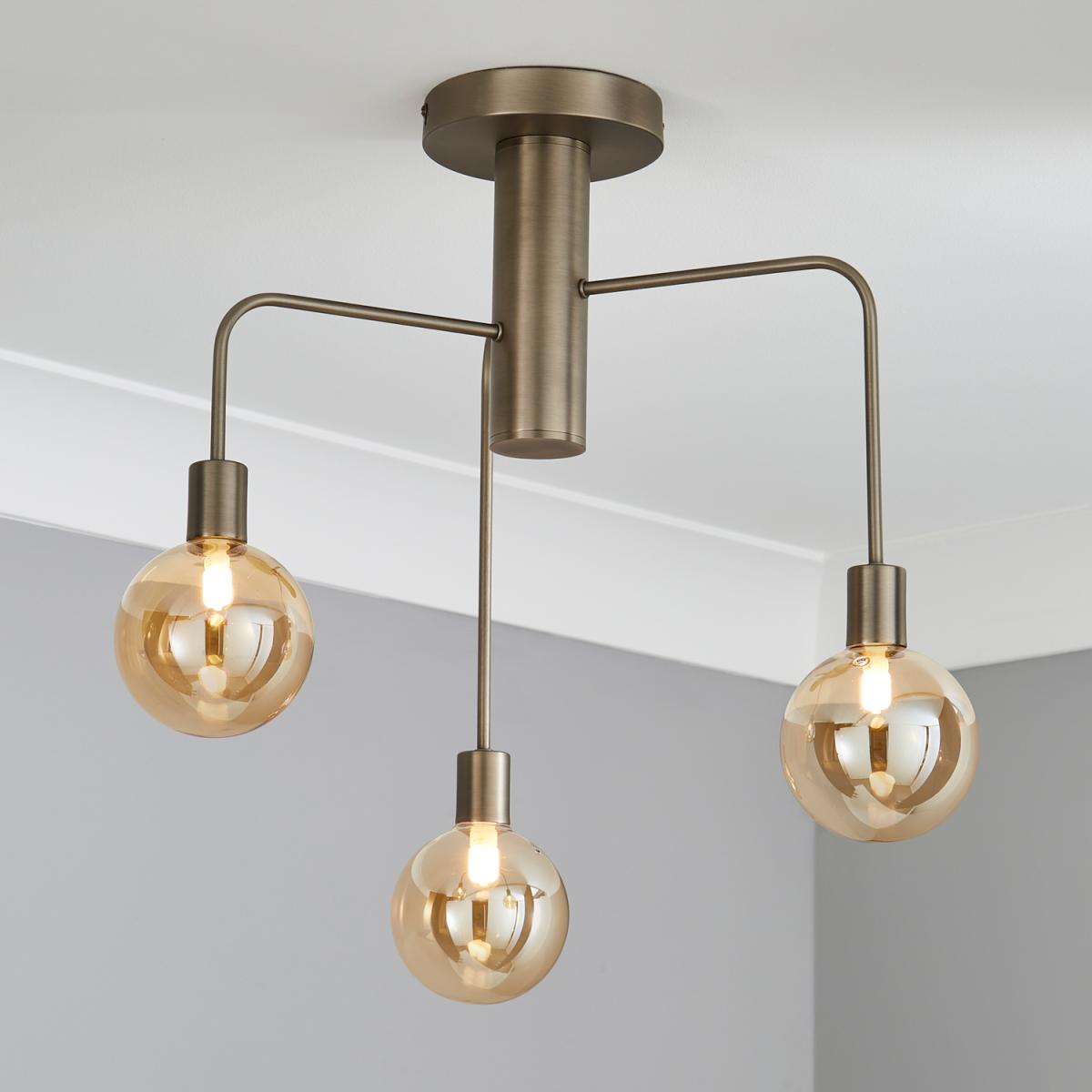 I love this gold semi-flush ceiling light for its modern yet timeless appeal. Its simple, understated design makes it versatile enough to suit a range of interiors, from contemporary schemes to more classic or eclectic spaces. The warm gold finish adds a touch of luxury without feeling too ornate, and the three exposed bulbs provide excellent ambient lighting. It works particularly well in rooms with higher ceilings, where it can act as a statement piece without overwhelming the space. For styling, try pairing it with minimalistic accessories for a sleek look, or add textured textiles and plants to soften the overall aesthetic and create a cosy, inviting atmosphere.