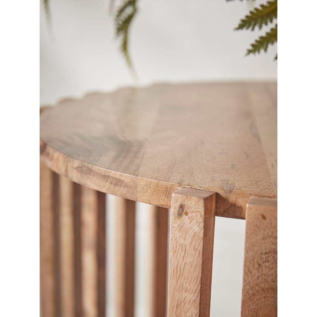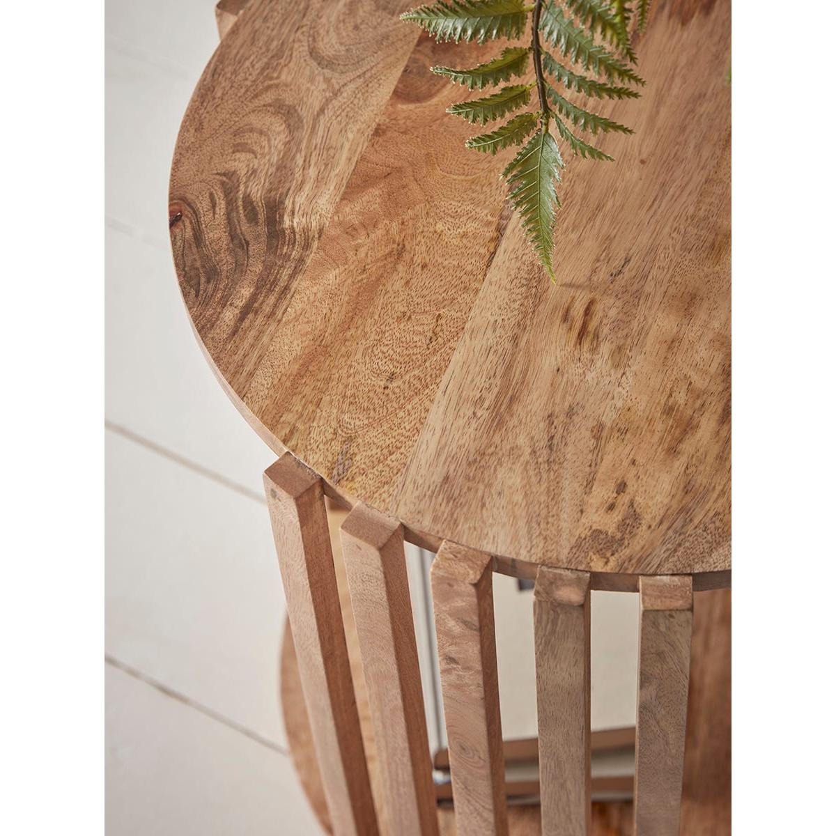 Crafted from mango wood, our Trista side table has rich tones which allow the natural grain of the wood to shine through.  Vertical wooden slats around the edge add an eye catching detail to create a contemporary piece that feels open and airy. Space between the slatted detailing allows the bottom shelf to be used as storage and to display items such as your favourite books or even a potted plant. Also available as a media unit and a coffee table.