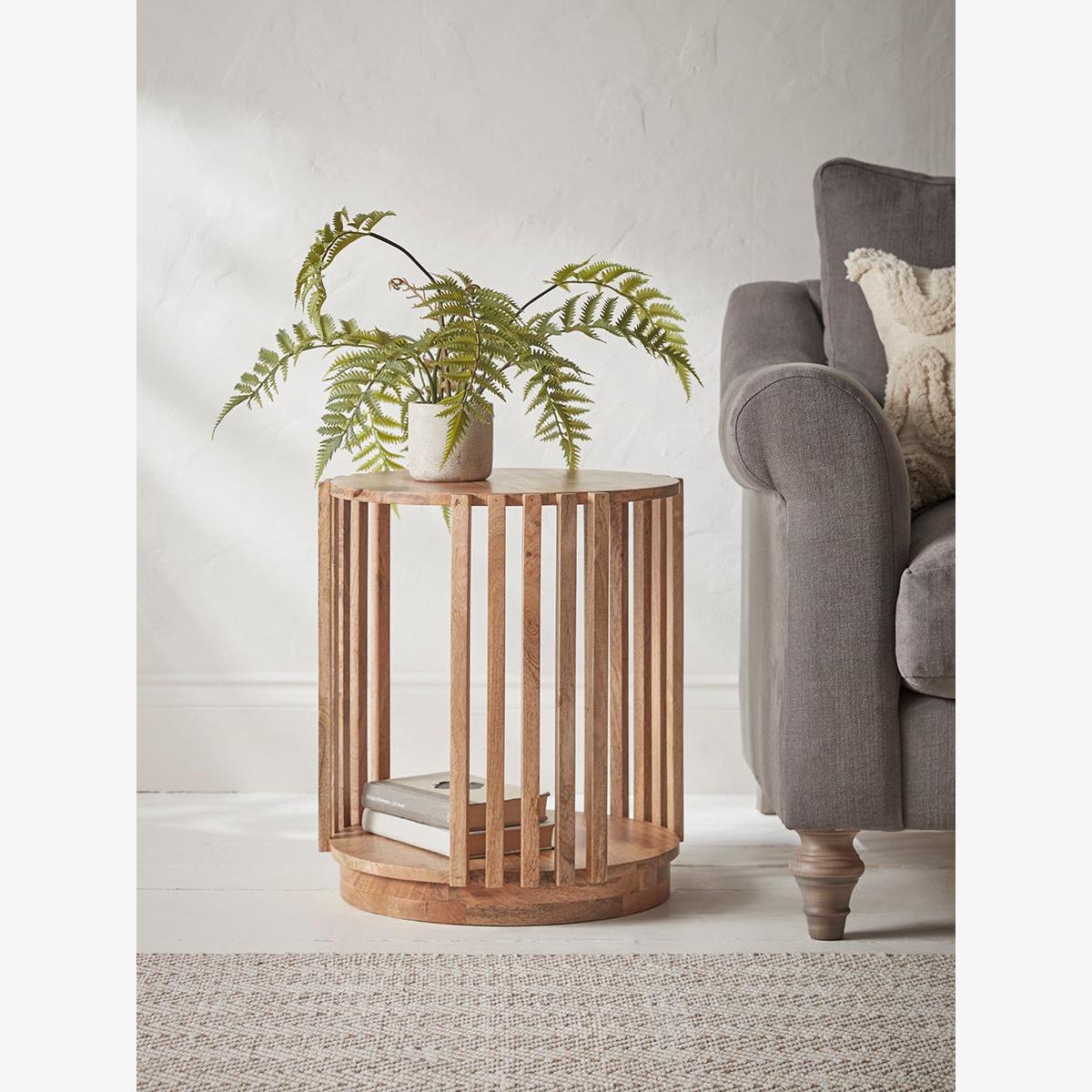 I love this little Trista side table for its clean lines and versatility; it works well in both modern and more traditional interiors. Its natural wood finish adds warmth and texture, making it a great choice for living rooms, bedrooms, or cosy reading nooks. Practical styling tips include pairing it with a small lamp, a stack of books, or a decorative vase to create an inviting yet functional corner. Its open slatted design ensures it doesn't feel bulky, so it can easily fit next to a sofa or armchair without overwhelming the space. Overall, it's a stylish and practical choice for adding both function and charm to various rooms.