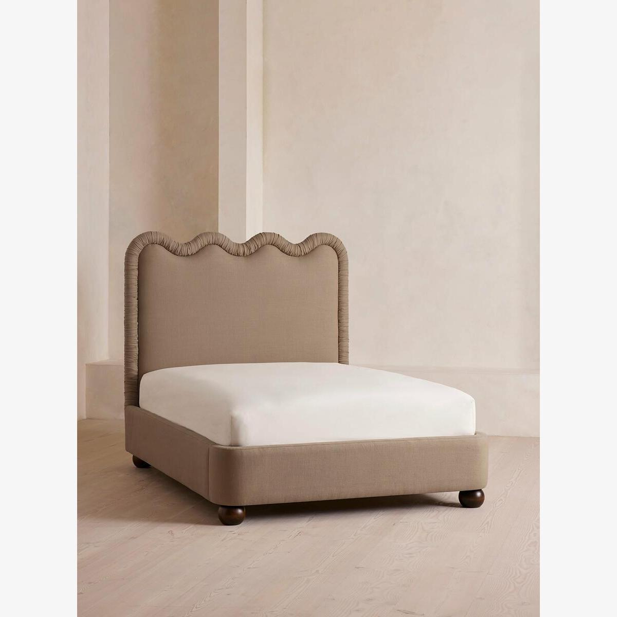 Taking inspiration from the interiors in Soho House Paris, this statement bed frame is finished with a playful waved headboard. It comes fully upholstered in your choice of rich-toned velvet or pure linen.