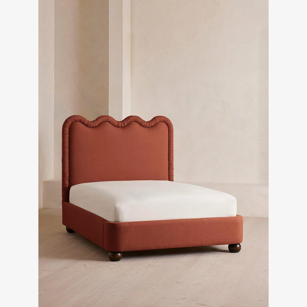 I’m a fan of the Tristan for its gently scalloped headboard and rich sienna linen - it brings shape and warmth without overwhelming a room. Its emperor size works equally well in a light, minimalist scheme or alongside deeper jewel tones in a more maximalist setting. To style it, layer neutral bedding with a couple of terracotta or rust-hued cushions to echo the frame, then introduce natural textures - think a jute rug at the foot and a couple of woven baskets for storage. Keep bedside tables simple, perhaps in oak or black metal, to let the bed remain the focal point.