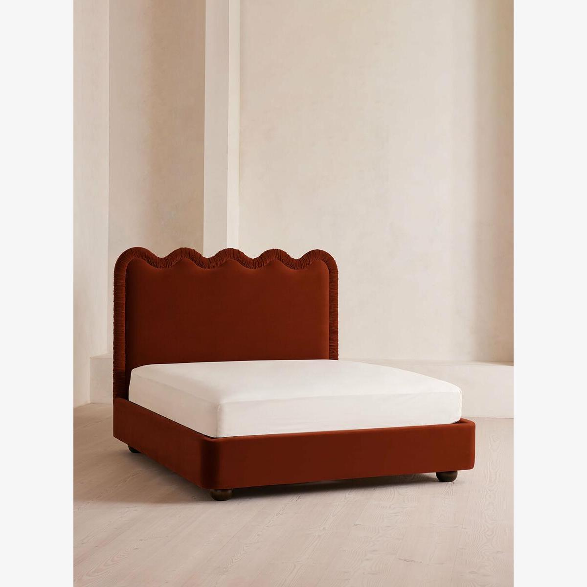 As an interior stylist, I love how the Tristan’s rust velvet and scalloped headboard introduce warmth and interest without dominating the scheme. Its low-slung, elegant frame suits everything from mid-century modern to eclectic and maximalist bedrooms. Style it with crisp white bedding, a textured neutral throw and brass or walnut bedside furniture to complement the velvet’s glow, keeping surrounding colours muted so the rust can really stand out.