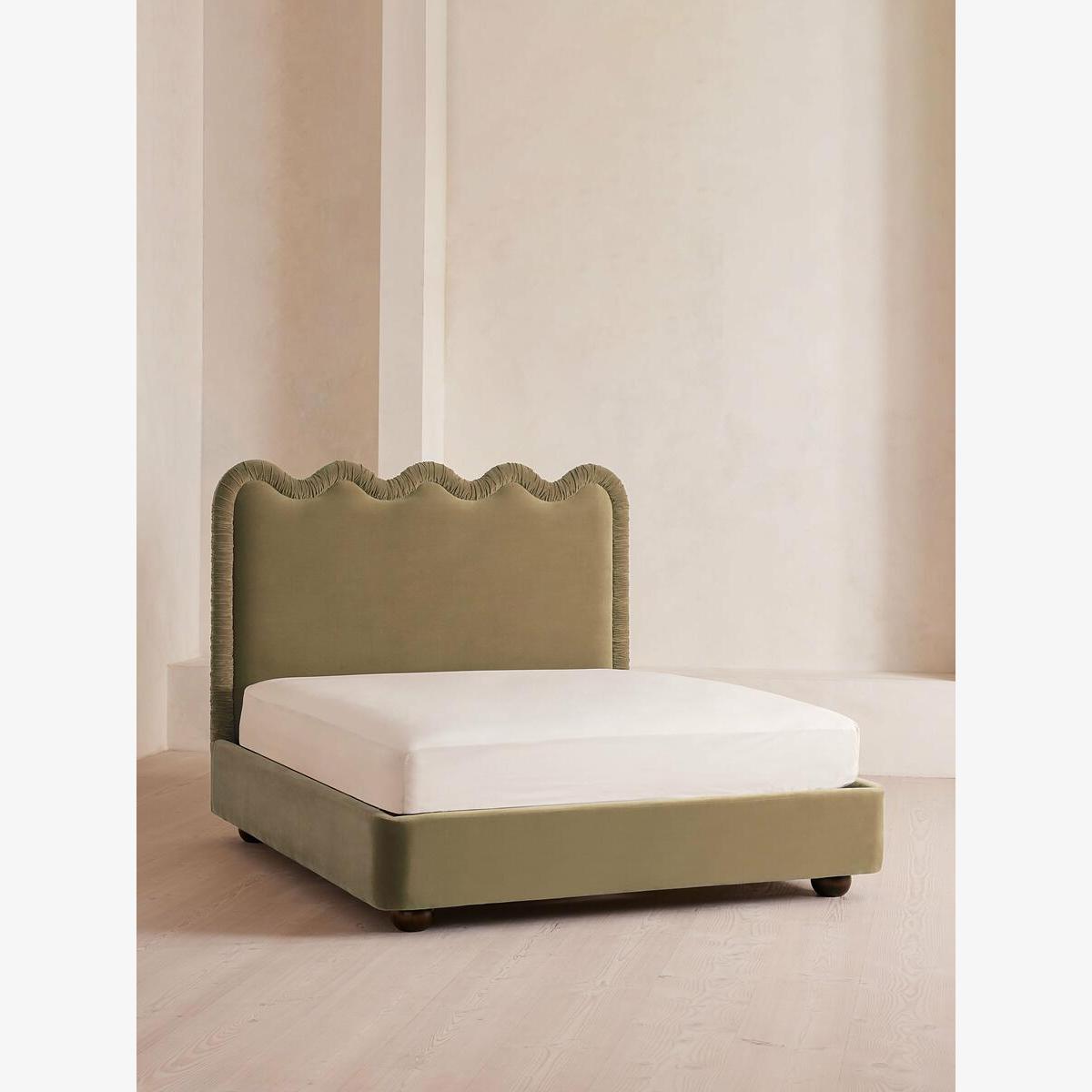 I’m a fan of this lichen velvet bed for its soft, tactile finish and subtle scalloped headboard - it lifts a room without shouting. It works particularly well in contemporary Scandi or mid-century schemes, where its muted green plays nicely against pale woods and neutral walls. For styling, keep bedding simple in off-whites or stone greys and add interest with a chunky knit throw or linen cushions in terracotta and ochre. Pair with warm timber side tables and a brass lamp to bring out the velvet’s depth, and finish with a couple of leafy plants for an easy, lived-in feel.