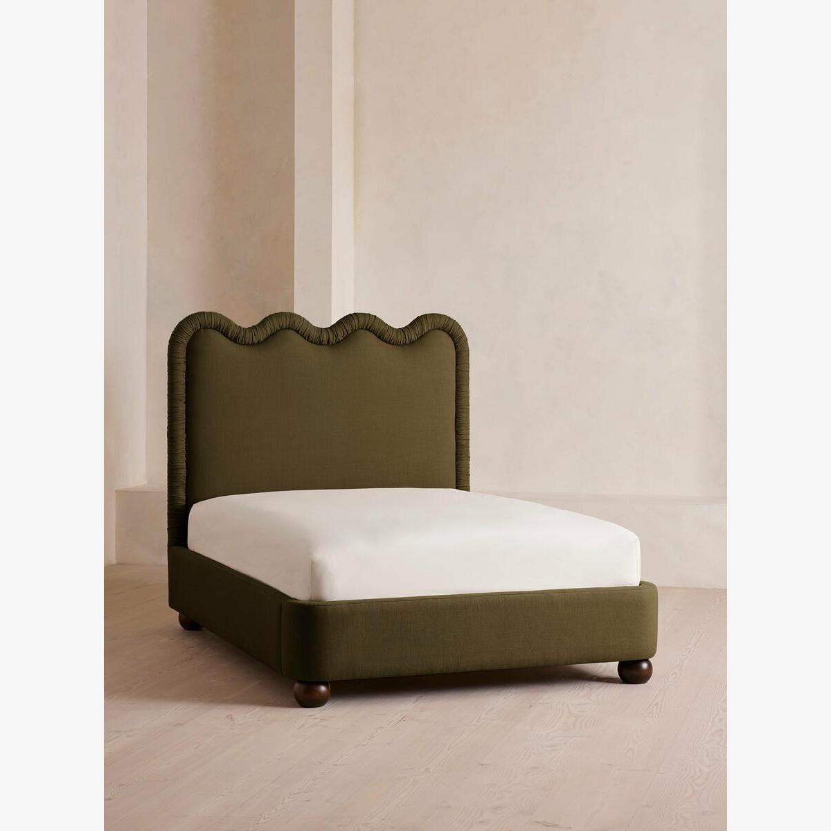 I’m a big fan of the Tristan bed in olive linen - its scalloped headboard and deep, textured upholstery give a sense of comfort without feeling fussy. The warm green tone works equally well in contemporary country schemes, Scandi-inspired rooms or a more eclectic living-meets-bedroom space. To style it, start with crisp white or ivory linens and layer on cushions in muted terracotta or ochre for contrast. A chunky knit throw at the foot softens the look, while simple bedside tables in natural wood or matte black keep the focus on the bed’s shape. Finish with a low-pile rug in neutral wool to ground the scheme.