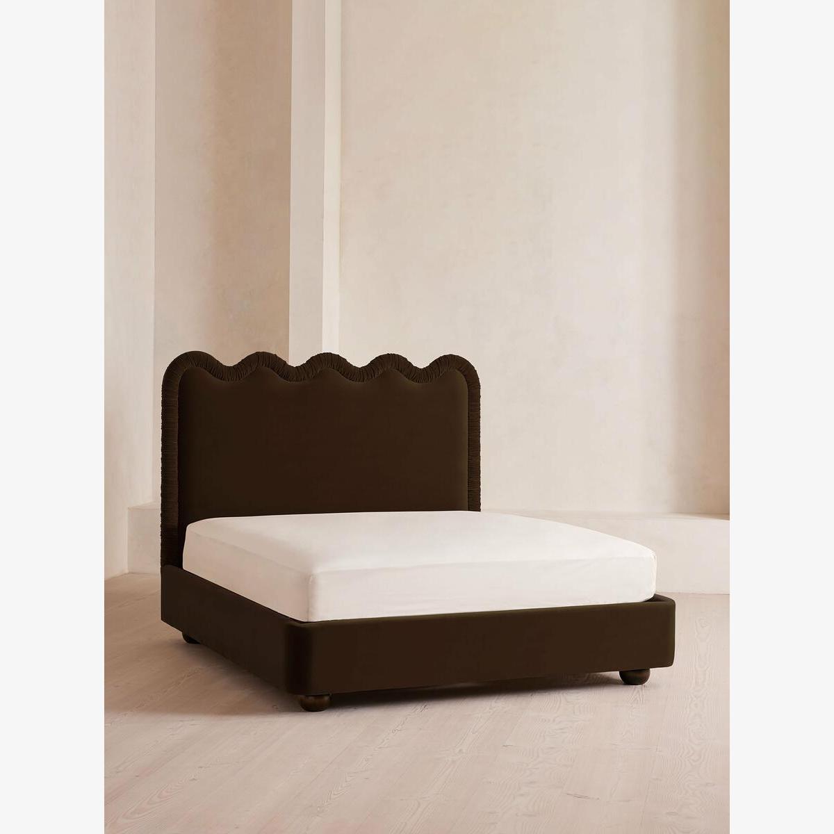 I’m a big fan of this chocolate velvet bed for its clean lines and subtle scalloped headboard - it adds just the right amount of interest without overwhelming a room. The deep cocoa tone works brilliantly in both neutral schemes (think soft greys and linens) and more dramatic palettes with jewel-toned accents. To style it, keep bedding crisp in off-white or dove grey, then layer in textured cushions and a chunky throw for contrast. Pair with brass or matte black bedside lamps and a low-pile rug in a light hue to lift the look. It’s equally at home in a contemporary apartment as it is in a cosy country retreat.
