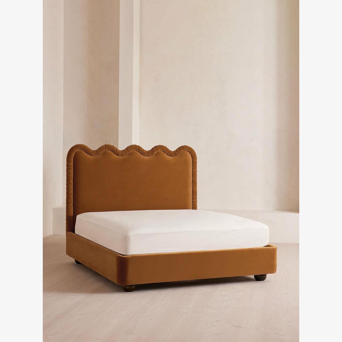 I love how this mustard-velvet Tristan brings instant warmth and character without feeling over the top. Its scalloped headboard works particularly well in mid-century, eclectic or contemporary bedrooms, where you can balance the bold colour with neutral linens and a mix of textured cushions in muted greens or terracotta. For styling, keep bedside tables simple - think black metal or pale wood - to let the bed remain the focal point, then layer a soft, cosy rug underneath and echo the mustard hue in small accessories like a throw or framed artwork. This approach ensures the bed stands out while still feeling balanced in the overall scheme.